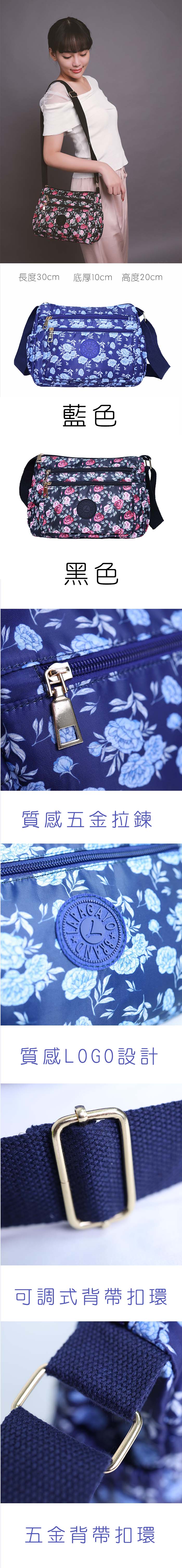 【lapagayo】典雅玫瑰尼龍側肩背包- PI-06399A-2-56藍色