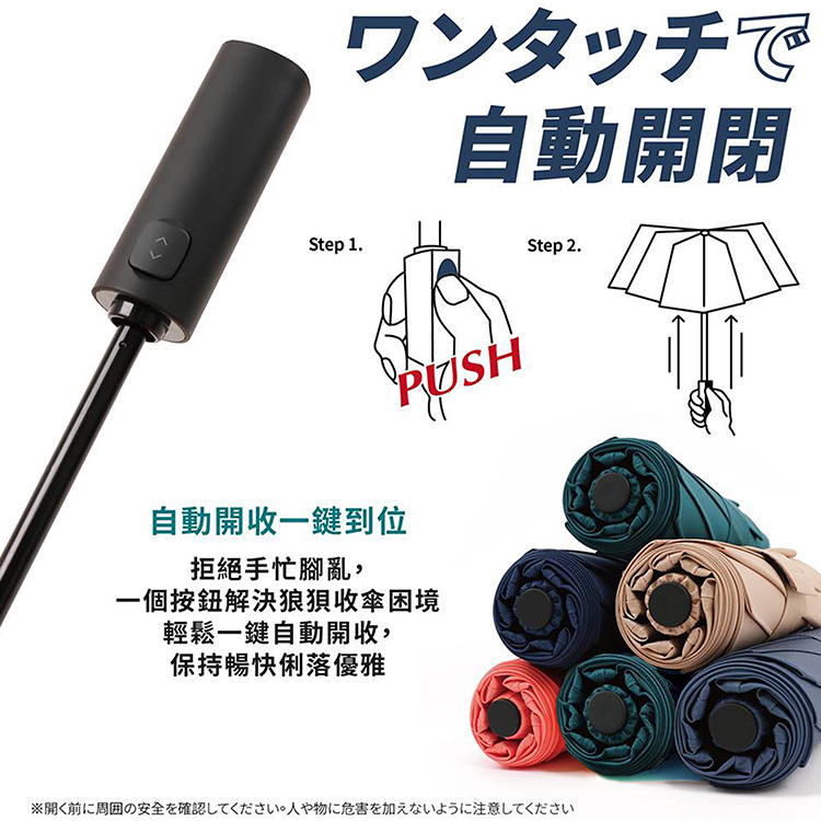 有效維持傘面固型,一鍵自動開收按鈕,3秒瞬間捲收完畢