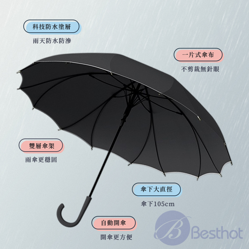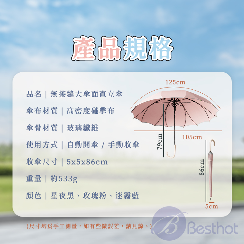 【Besthot】無接縫大傘面直立傘 自動開傘