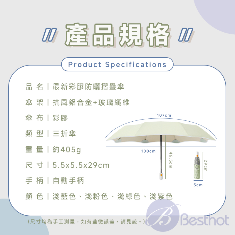 【Besthot】三代彩膠防曬摺疊傘