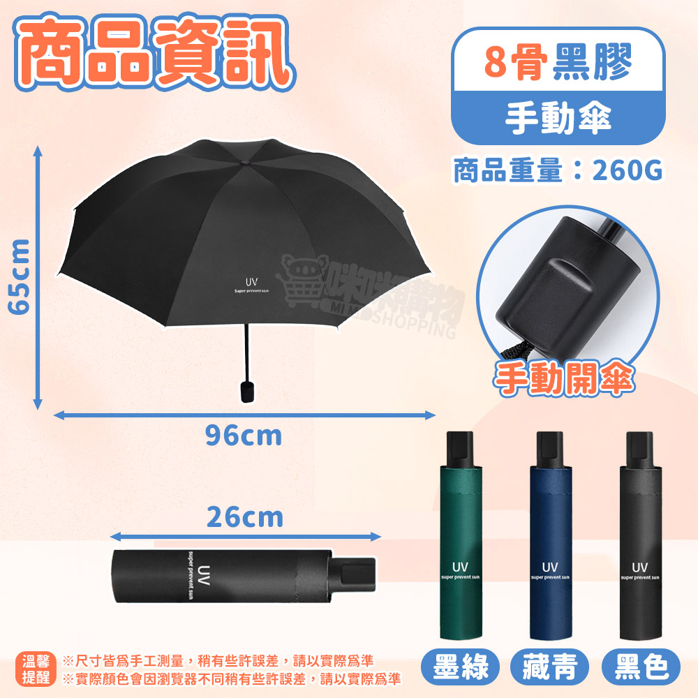 【咪咪購物】VID 雨傘 折疊傘 8骨|手動|藏青|晴雨兩用