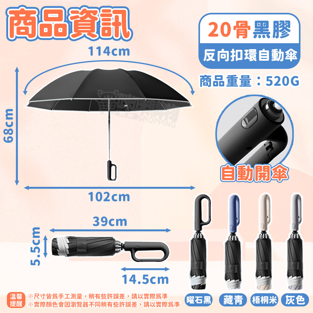 商品款式:20骨反向扣環自動傘