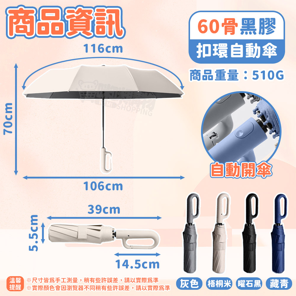商品款式:60骨扣環自動傘