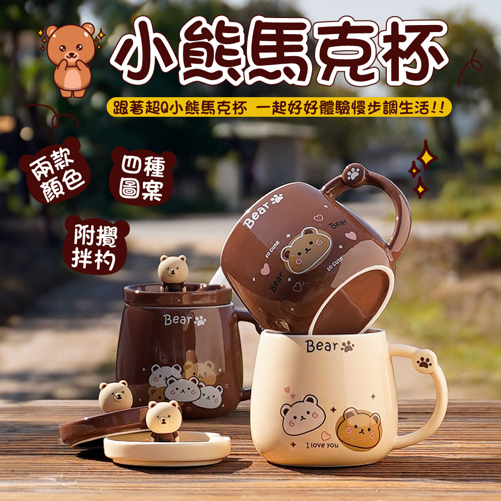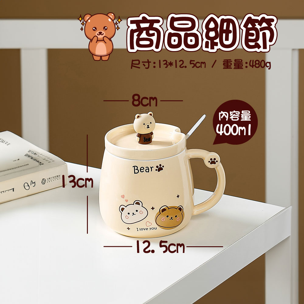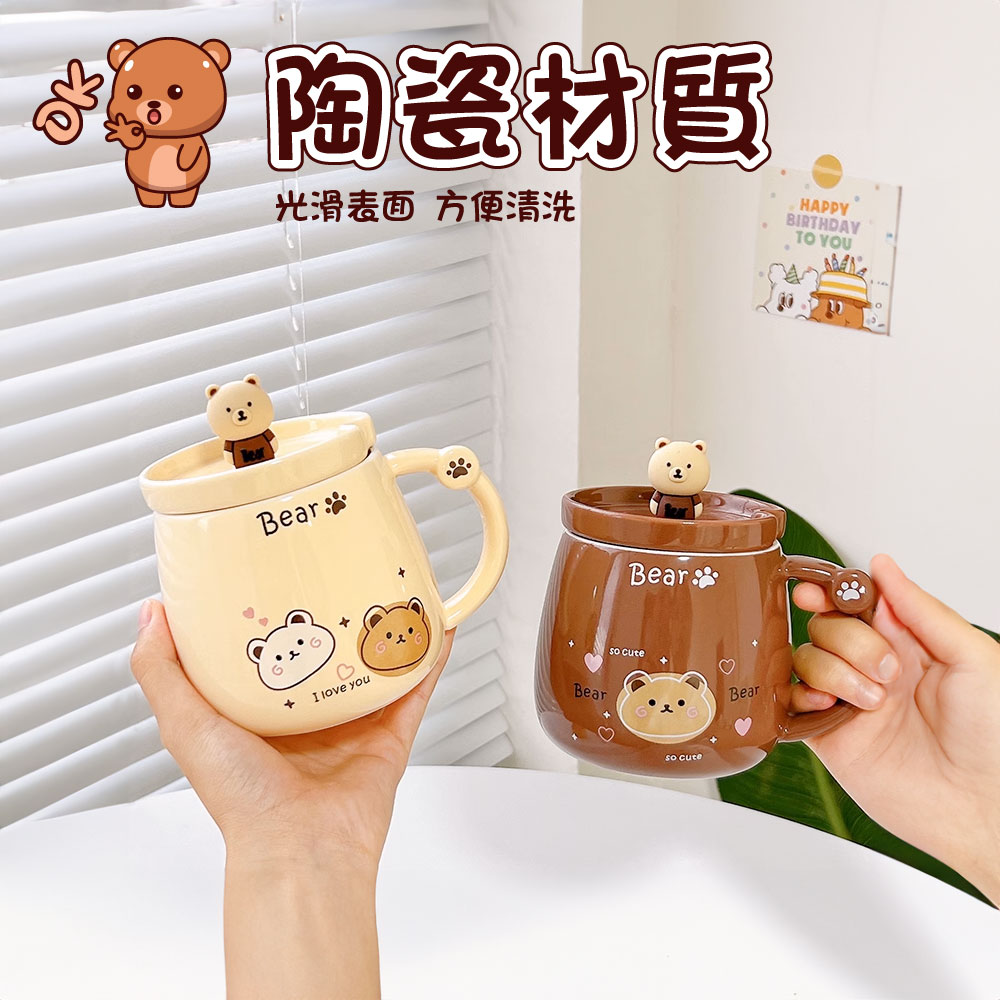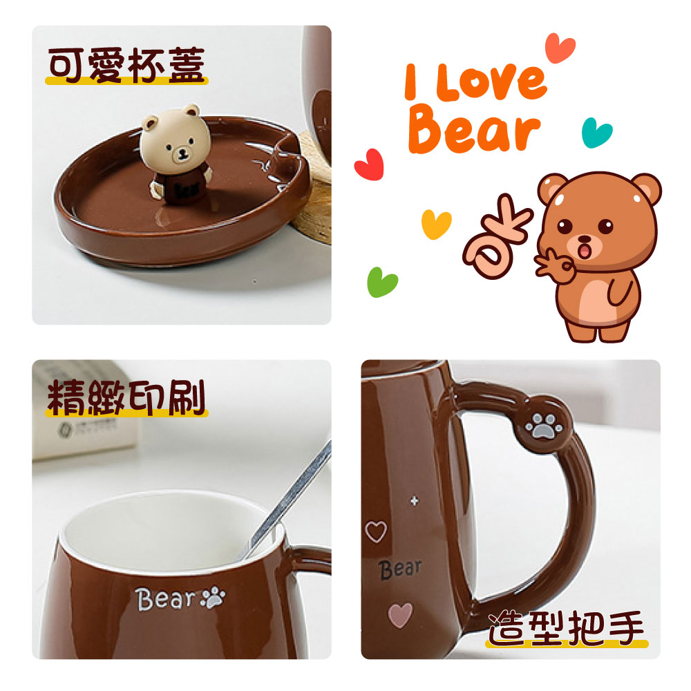 小熊馬克杯【戀愛小熊】 小熊造型馬克杯 馬克杯 水杯 杯子 附贈攪拌勺 陶瓷水杯 可愛小熊馬克杯