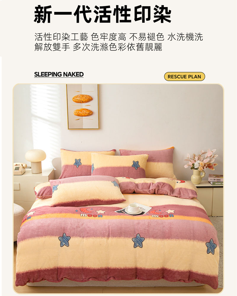 A-nice JOJO專櫃品牌 加厚款法蘭絨 床包兩用被毯四件組 柔軟細緻保暖 C - 星月夢境
