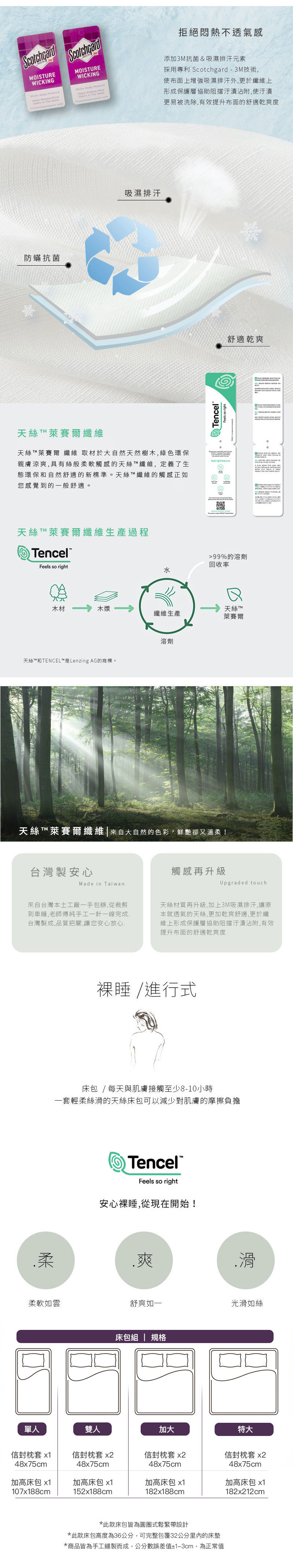 材質 : 50%萊賽爾纖維(天絲)+50%聚酯纖維(超細纖維/3M吸濕排汗專利))
