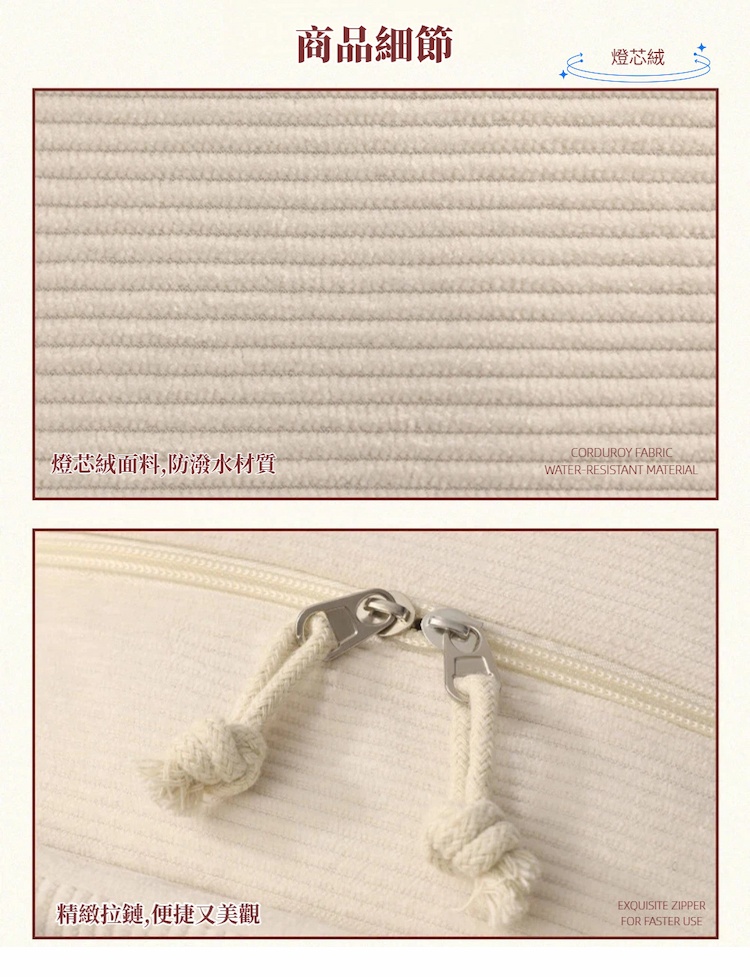 1. 燈芯絨外層設計,手感柔軟有質感