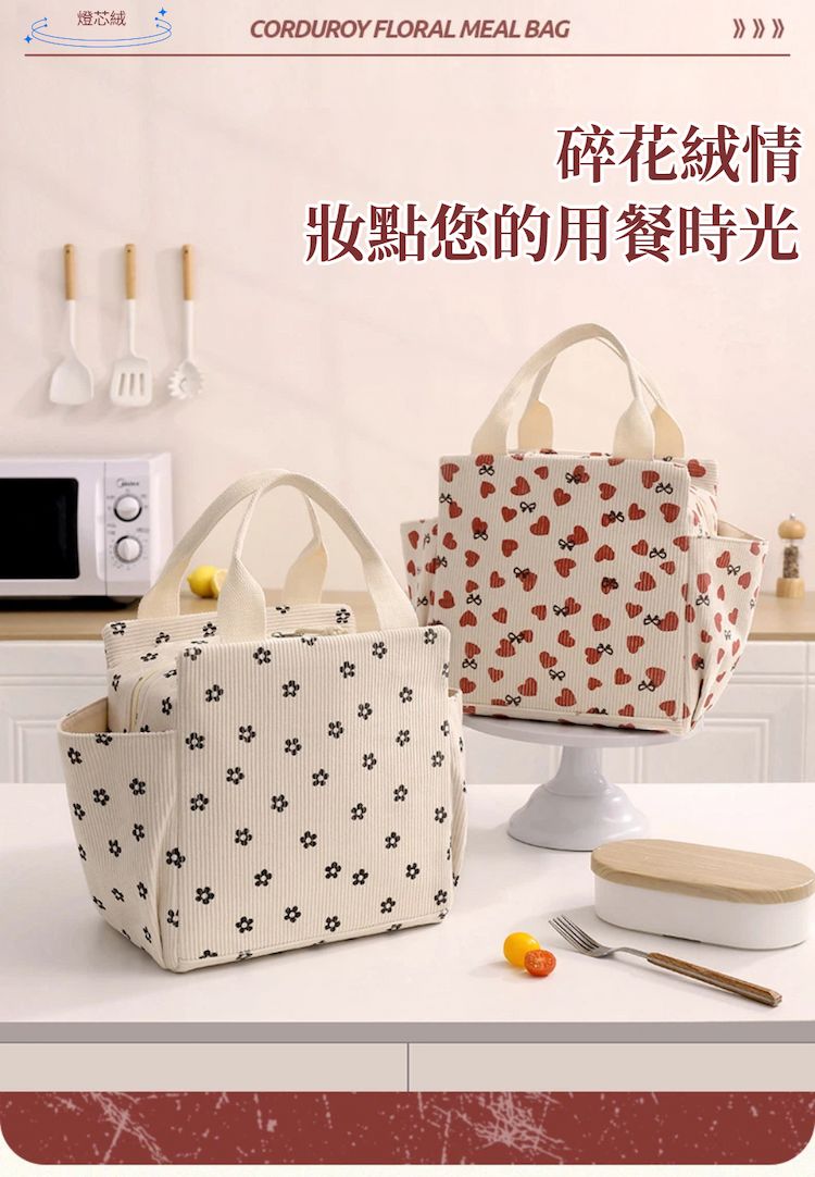 【A&R】韓系燈芯絨保溫保冷手提便當袋 大款