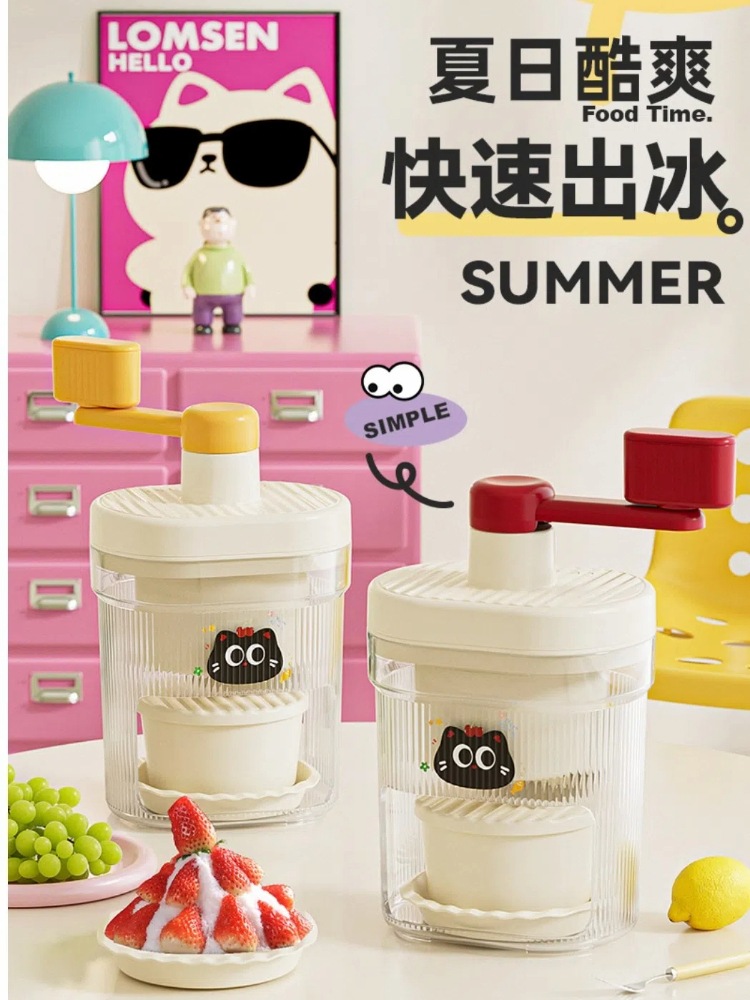 【A&R】吾家有貓手搖DIY刨冰機 附碗x2+碗蓋x2+盤x4 - 元氣紅