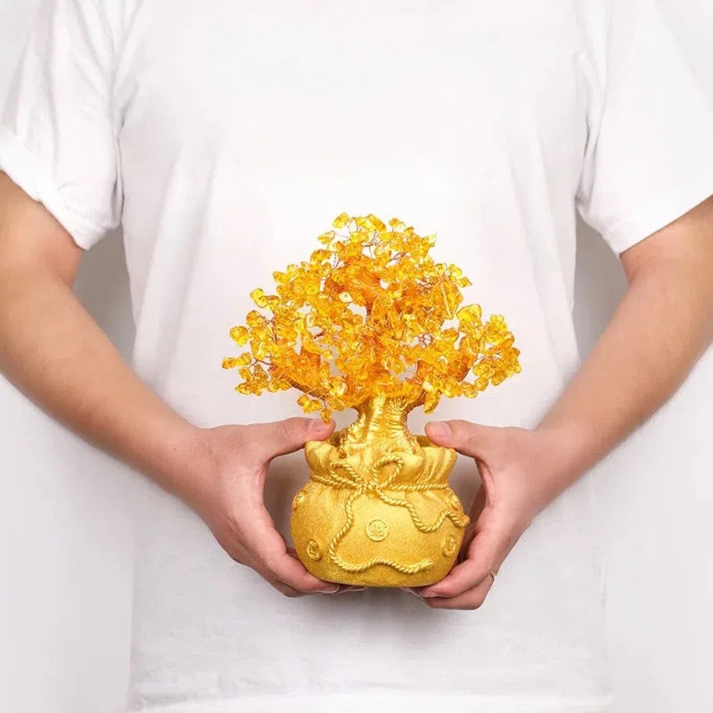 【A&R】招財黃水晶樹 聚寶盆 黃金萬兩小福袋款 附旋轉底座