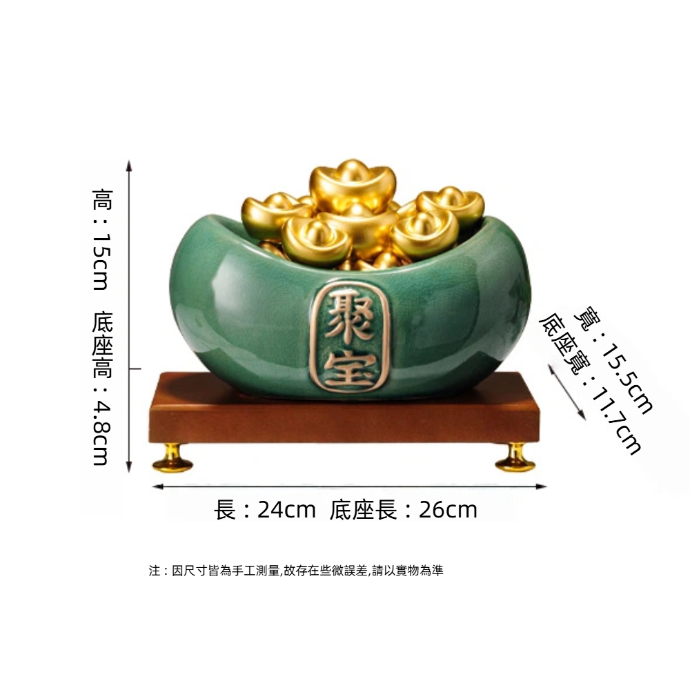 尺寸 : (聚寶盆)24x15.5x15cm、(底座)26 x11.7x4.8 cm