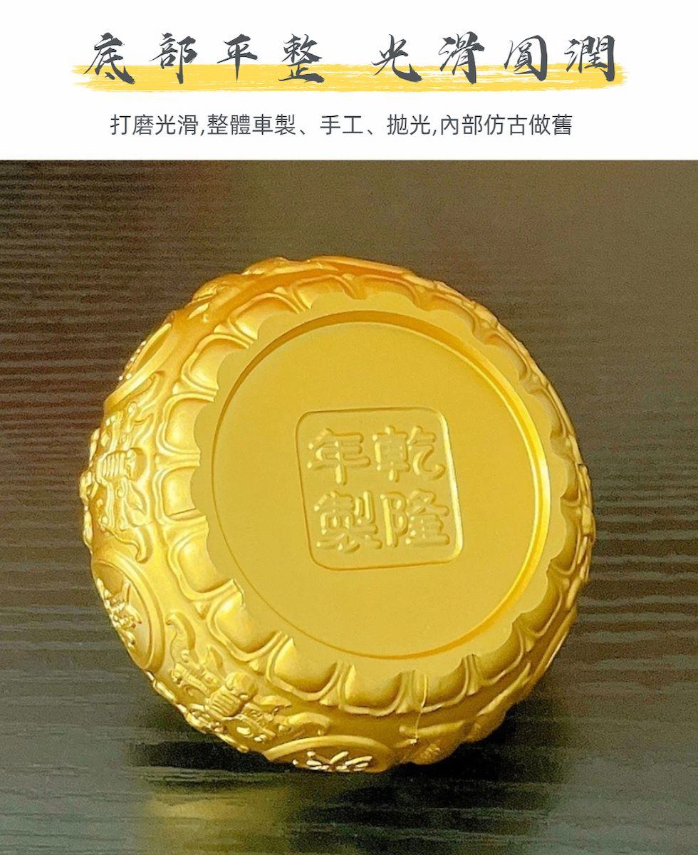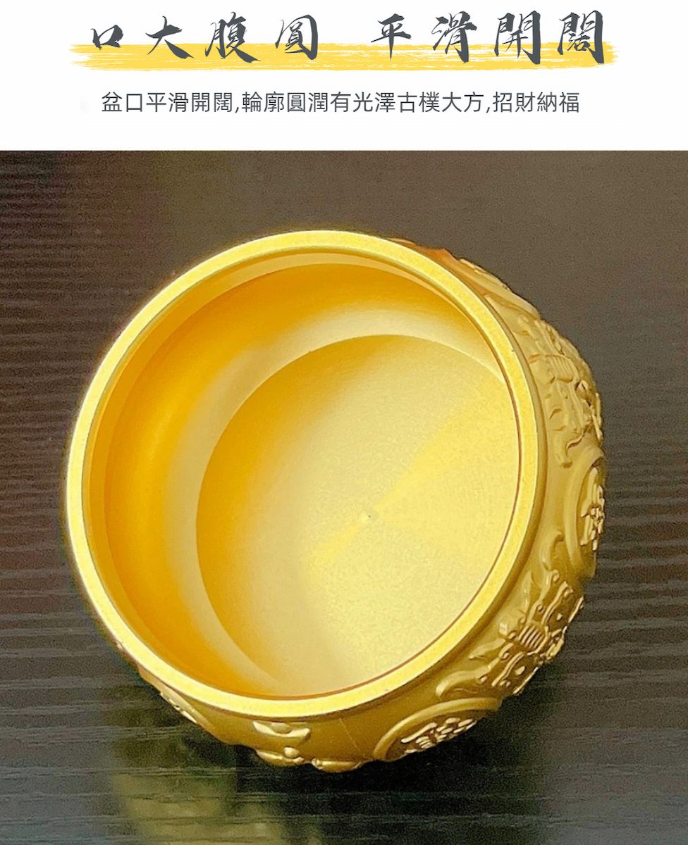 【A&R】招財開運 八福雙魚聚寶盆附小元寶款式 : 大款材質:黃銅尺寸:8 × 8 × 4.5 cm重量:807 g產地:China內容物:八福雙魚聚寶盆(小元寶約 900 顆)×1『必買優點』1. 八福雙魚寓意・招財聚富雙魚象徵「年年有餘、財源不斷」,搭配「福」字與滿滿元寶,寓意 招財進寶、富貴聚財、好運加倍,不只是擺飾,更是好兆頭。2. 黃銅材質・沉穩有份量整體採用 黃銅打造,色澤溫潤不浮誇,實際拿在手上有重量感,擺放穩固、不易傾倒,質感一看就不同。3. 線條流暢・復古細節到位立體浮雕工藝,紋路細膩、比例協調,圖騰雕刻恰到好處,展現 復古吉祥美感,耐看不俗氣。4. 盆口圓潤・內部光滑好清潔盆口圓順平滑,邊緣不刮手,內部拋光處理,放元寶、硬幣或飾品都好整理,實用又美觀。5. 開運送禮・自用擺設都合適不論是 開店開業、入厝喬遷、新年送禮,或是居家、櫃檯、辦公桌擺放,都非常討喜、有祝福感。『溫馨提醒』1. 尺寸皆為人工測量略有誤差,顏色因顯示器而有所不同,請以收到實物為主。2. 本商品內含小元寶配件,請避免幼兒或寵物拿取,以免誤食,使用時請留意擺放位置。