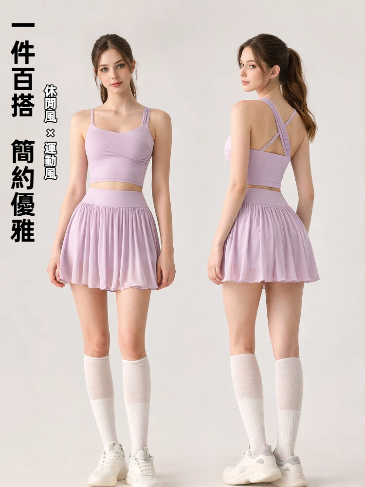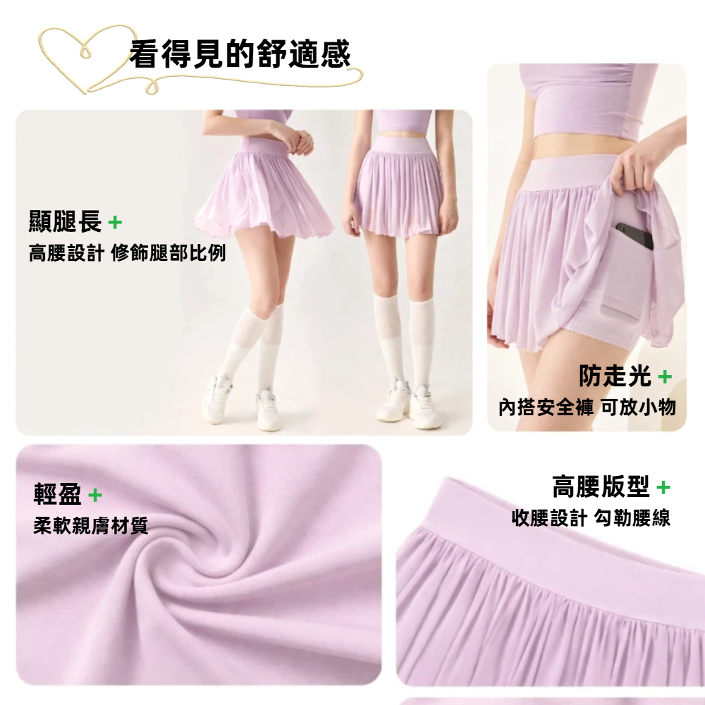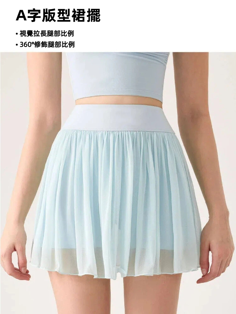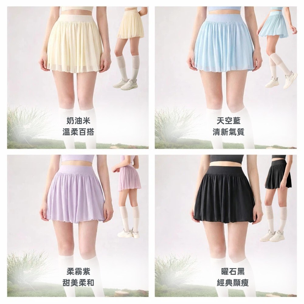 【A&R】韓系網紗高腰顯瘦百褶A字運動褲裙 S-L 四色任選