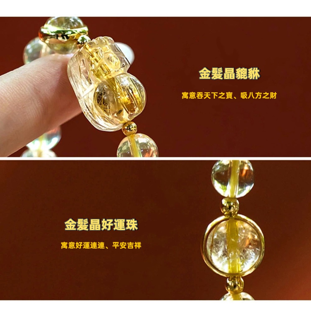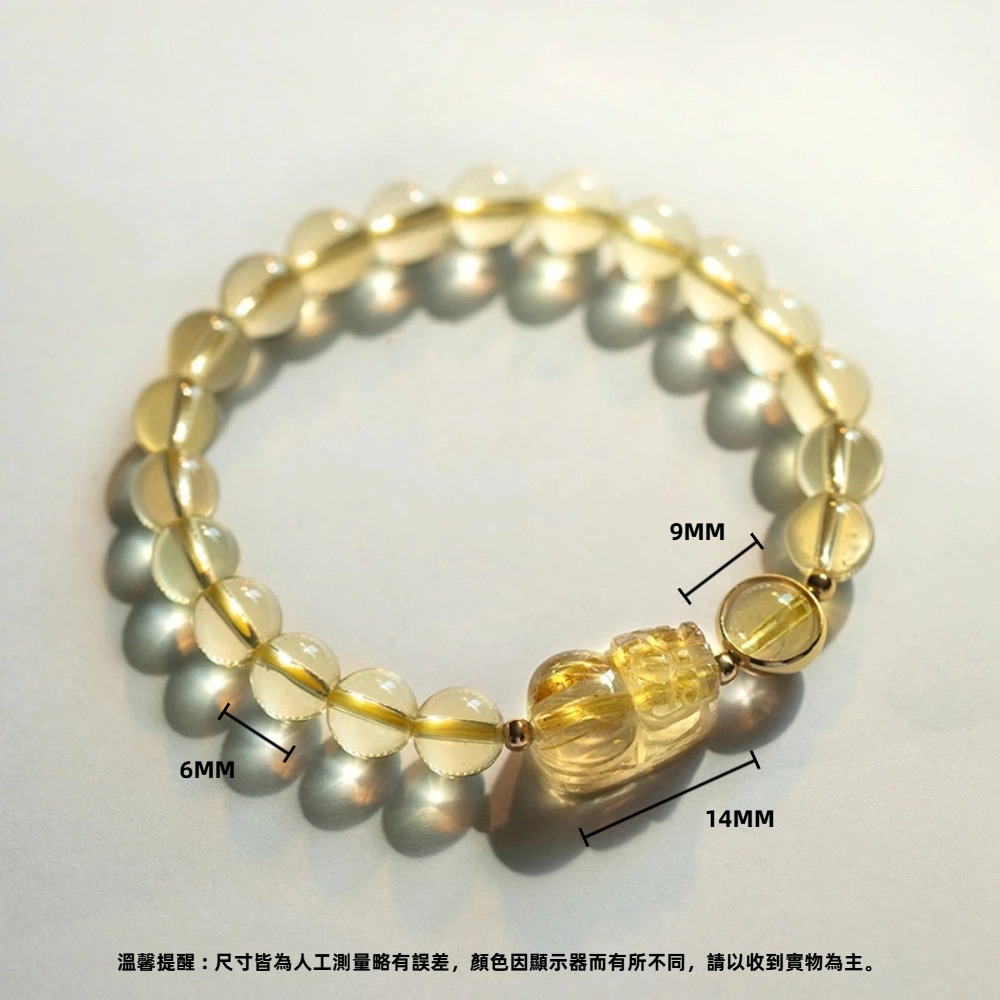 尺寸 : 黃水晶6mm、貔貅14mm、直徑60mm(彈性繩)