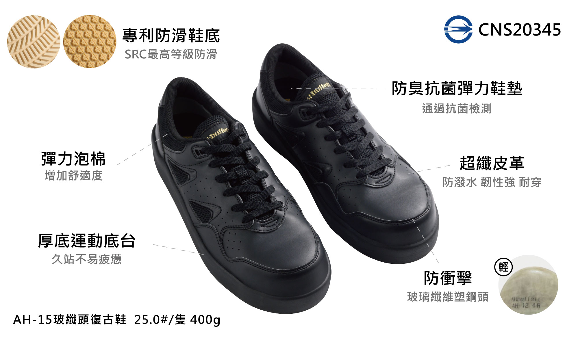【AHbuffett防滑鞋】AH-15 復古鞋 EVA鞋底 寬楦 CNS20345 輕量 鋼頭鞋 防護鞋 防滑工作鞋 止滑鞋 餐飲 餐廳外場