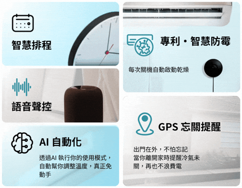 →關機自動送風,盡力吹乾內部濕氣,冷氣自動保持乾爽、告別異味,讓黴菌近乎無所遁形。而且專為各大品牌冷氣設計,可以讓絕大部分品牌冷氣都能享有高階守護!同時搭載快速配對專利與超廣紅外線控制,只要一鍵,就能輕鬆掌握家中各式冷氣與家電。