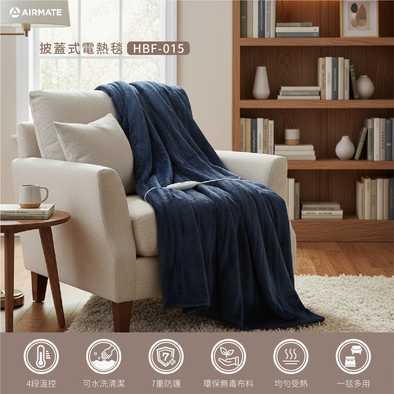 艾美特【披蓋式電熱毯HBF-015(午夜霧藍)】「不是電熱毯,是會給溫度的毛毯。」