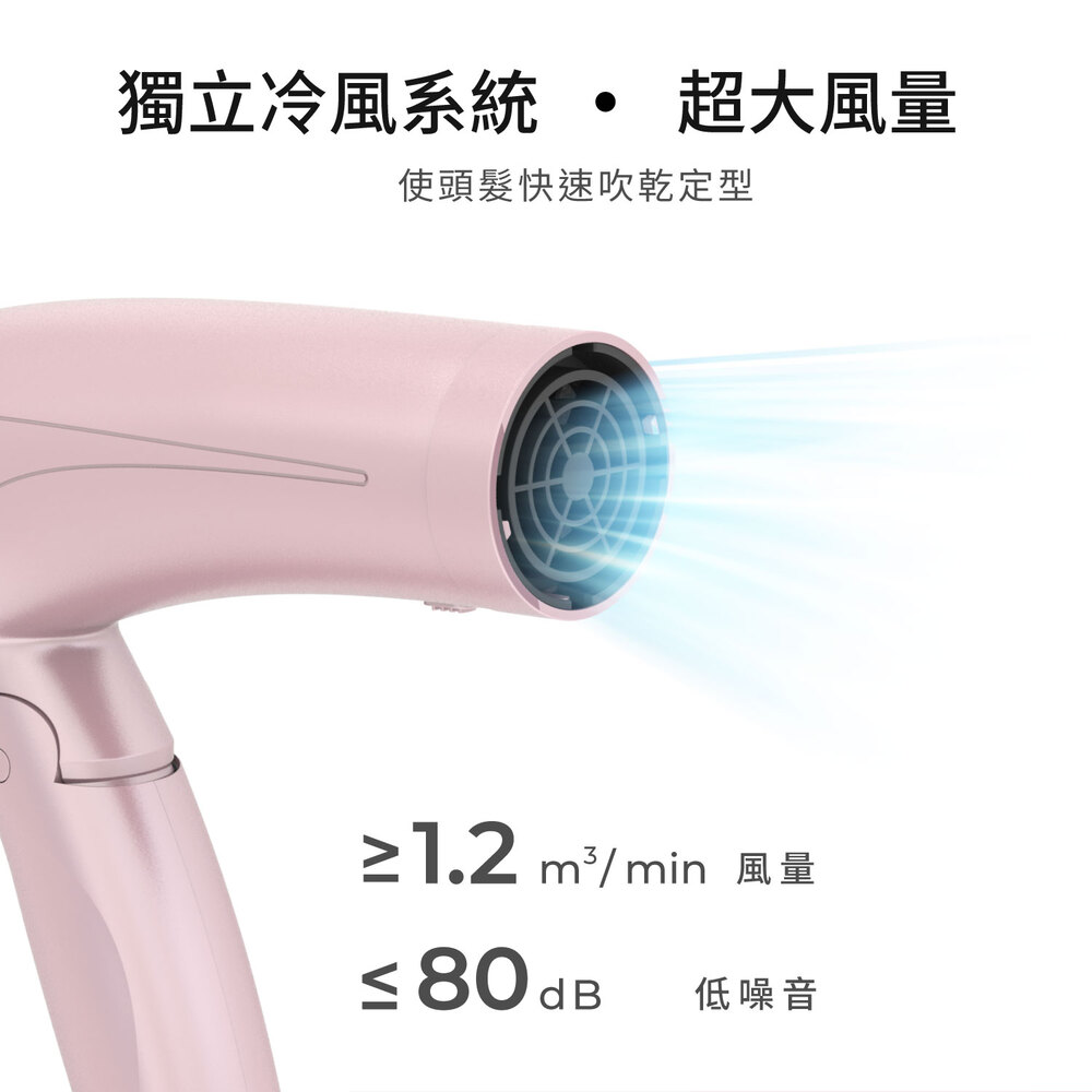 .負離子數大於3000萬個 / cm².3段風速,4種溫度選擇.3 重安全防護.符合握持 科學舒適設計,摺疊設計 , 收納省空間.超輕複合材料 ,整機僅重467g .磁吸式金屬進氣風口防塵網,拆裝方便容易清洗