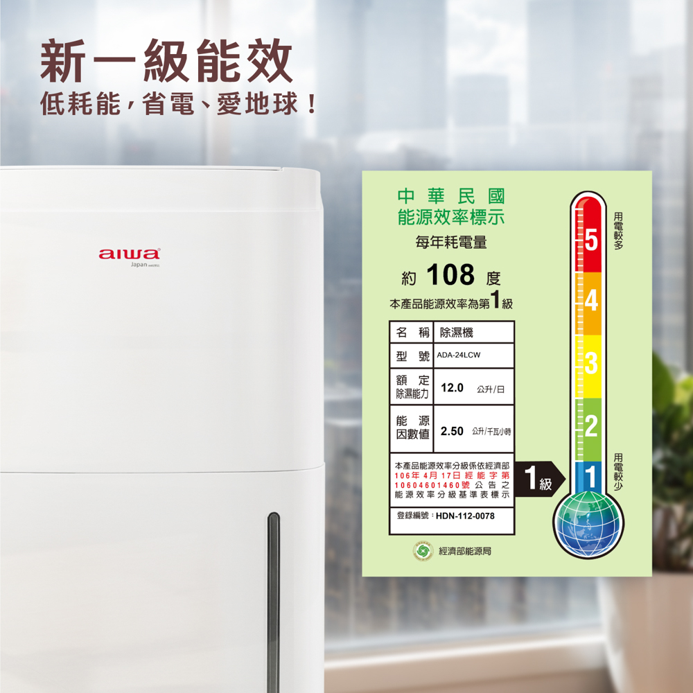 AIWA 愛華 12L 負離子清淨除濕機 ADA-24LCW