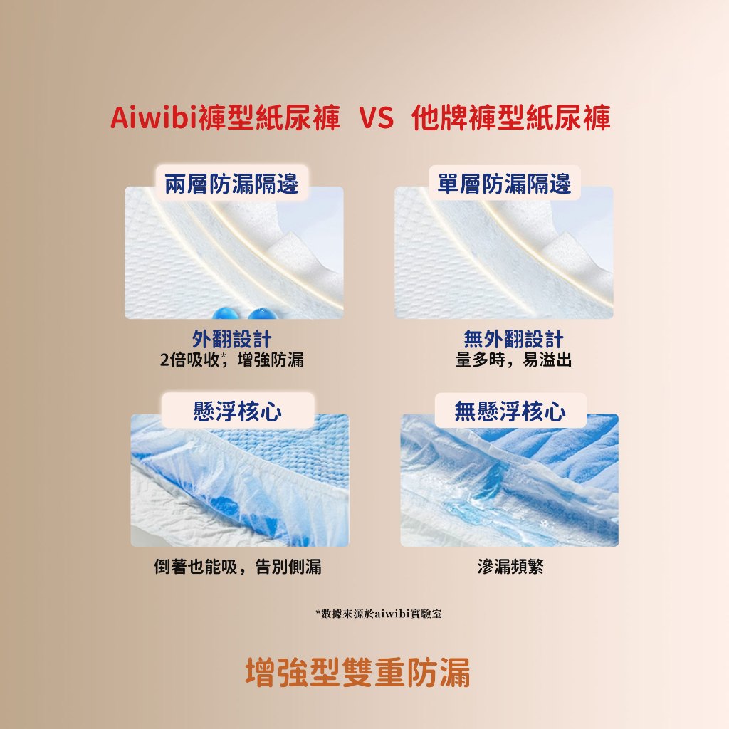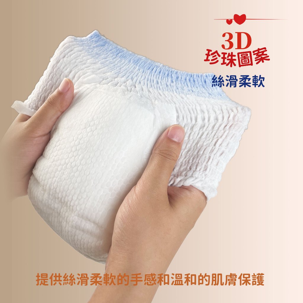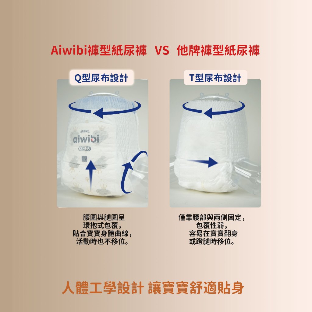 🐨Aiwibi品牌介紹Aiwibi是來自澳洲的嬰兒護理品牌,Aiwibi嬰兒紙尿褲和嬰兒褲通過了德國Dermatest臨床測試,被評為“優秀”,這是世界上最高的品質測試標準。此外,它還獲得了ISO9001、CE、GMPC和FDA標準的認證。Aiwibi代表著對提高嬰兒安全和全面護理的負責任的態度。 Aiwibi的忠實客戶群已擴展到90多個國家。Aiwibi正致力於成為您的第一和最佳選擇,並始終提供超越您期望的服務。🔥 品牌:aiwibi🔥 材質/成分:上層:熱風無紡布聚乙烯/聚對苯二甲酸乙二醇酯吸水層:高吸水性聚合物 、木漿背層:紡粘無紡布聚乙烯/聚對苯二甲酸乙二醇酯,薄膜聚烯烴🔥 產地:中國🔥 保存期限:3年🧡 * 澳洲熱銷No.1夜用甄柔拉拉褲🧡產品特點:夜用甄柔瞬吸褲型紙尿褲:我們家尿布是升級泡泡腰圍,立體珍珠紋面層,減少表面和寶寶屁屁的接觸面積,從而減少摩擦、防止紅屁屁。1,面層SilkySoft Fabric™我們的 SilkySoft Fabric™ 採用 1.2D 纖維製成,比人類頭髮細十倍,觸感如羽毛般柔軟絲滑,帶來極致舒適感。2,PE膜(技術)MicroAiry Film™獨家 MicroAiry Film™,設計有數十億個超細微孔。這種透氣 PE 薄膜可讓空氣自由流動,同時防止水通過,使透氣性提高 50%3,芯體(技術)Dual Absorbent Core™採用雙重芯體吸收技術,天然木漿加速吸收,而日本住友 SAP 確保最大容量,將吸收率提高 50%,提供卓越的夜間保護4,護圍增強型雙重防漏保護我們的防漏保護採用 45 毫米雙重屏障和腿部袖口折疊設計,可提供卓越的側漏保護5,吸尿量長達 14 小時的保護2 秒鐘瞬間鎖住液體,採用獨特的 Dual Absorbent Core™,可快速吸收水分並容納高達 2000 毫升。提供整夜保護和持久舒適,讓您的寶寶保持乾爽無洩漏6,腰圍(技術)360°Soft Bubble Waistband™我們創新的 360°Soft Bubble Waistband™ 可防止紅色印記,同時提供舒適貼身的穿著體驗,以適應寶寶的動作。7,面層紋路3D珍珠圖案減少皮膚接觸面積和摩擦,透氣性提高30%,同時溫柔呵護寶寶的嬌嫩肌膚。8,尿顯遇尿時顏色會從黃色變成綠色,可以快速輕鬆地知道何時需要更換