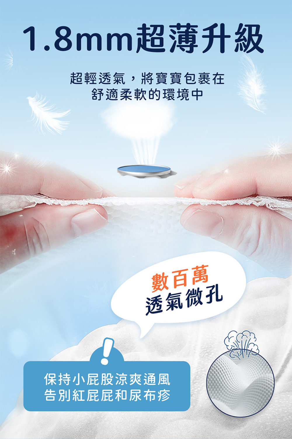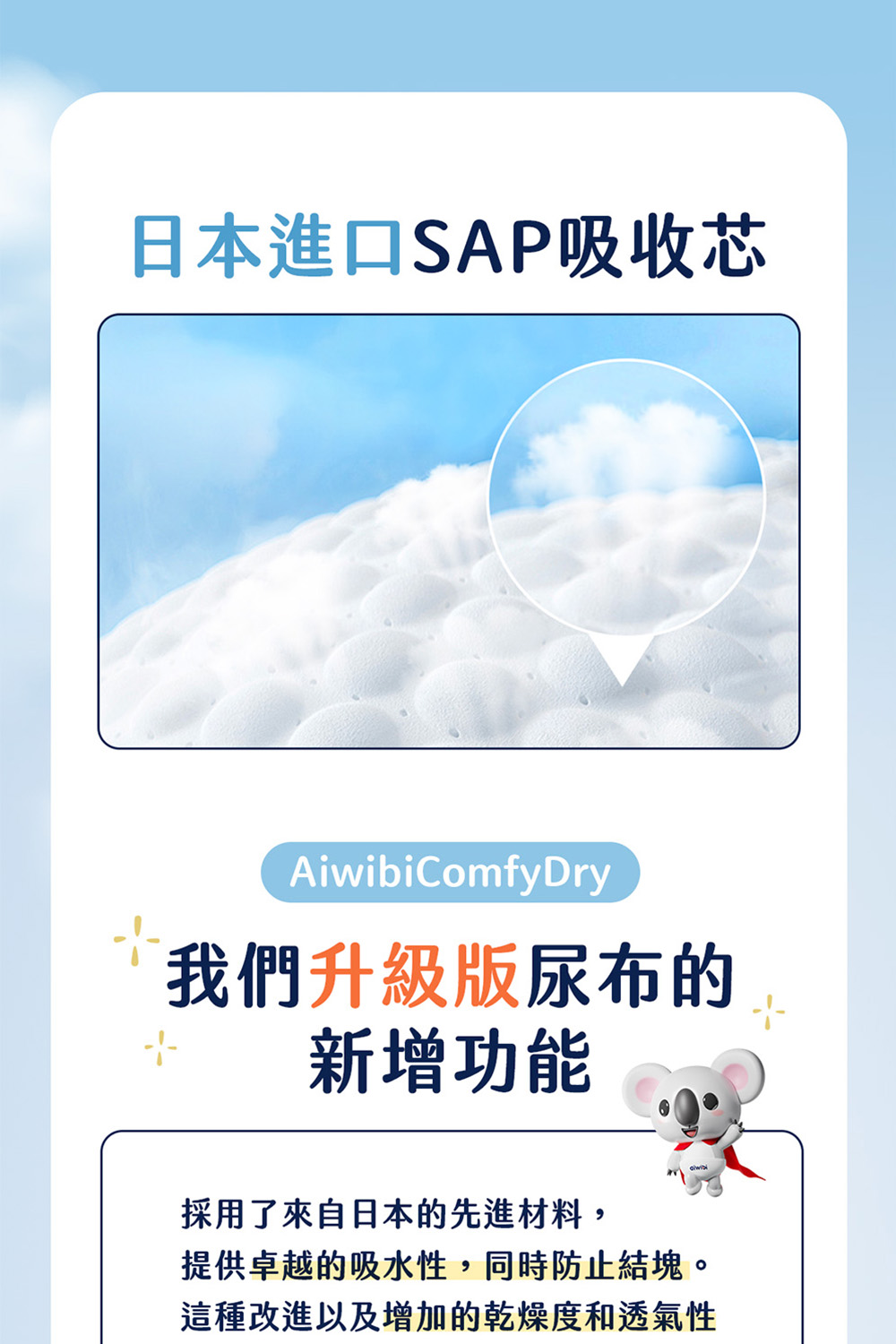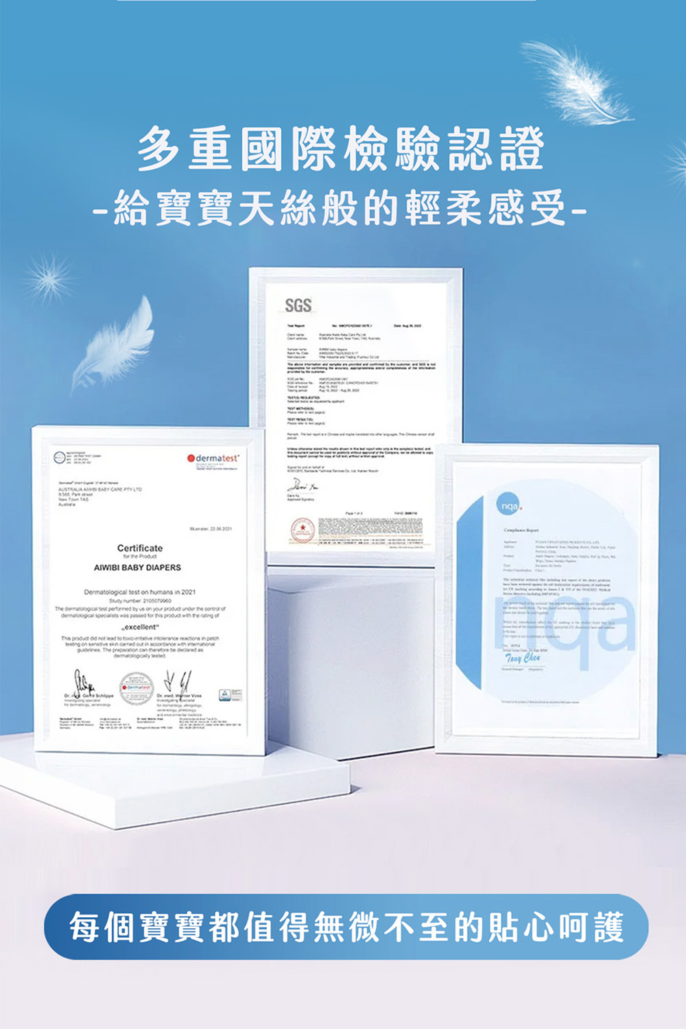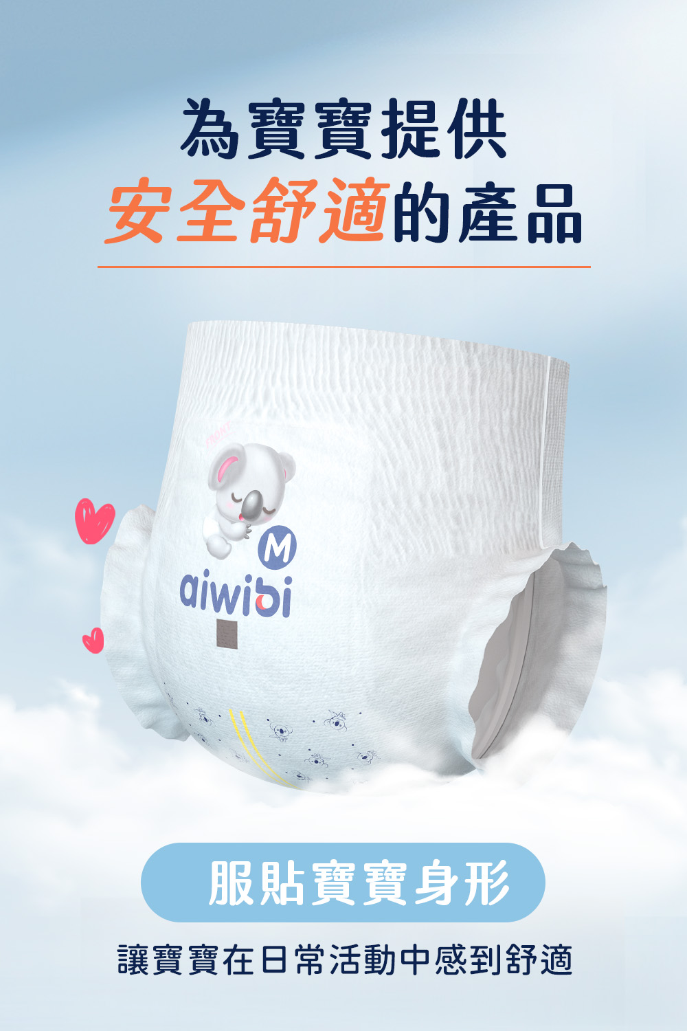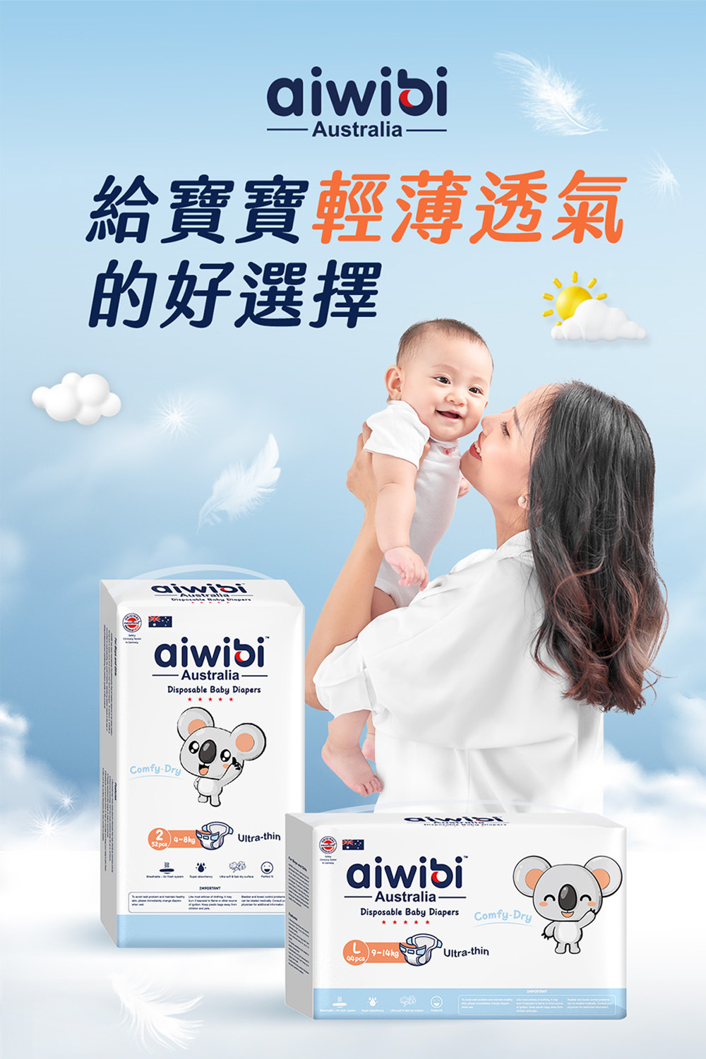 🐨Aiwibi品牌介紹Aiwibi是來自澳洲的嬰兒護理品牌,Aiwibi嬰兒紙尿褲和嬰兒褲通過了德國Dermatest臨床測試,被評為“優秀”,這是世界上最高的品質測試標準。此外,它還獲得了ISO9001、CE、GMPC和FDA標準的認證。Aiwibi代表著對提高嬰兒安全和全面護理的負責任的態度。 Aiwibi的忠實客戶群已擴展到90多個國家。Aiwibi正致力於成為您的第一和最佳選擇,並始終提供超越您期望的服務。🔥 口號: 從最微小的事開始累積,彼此充滿愛的照顧。 愛薇彼~最愛你。🔥品牌:aiwibi🔥材質/成分:上層:紡粘無紡布聚乙烯/聚對苯二甲酸乙二醇酯吸水層:高吸水性聚合物背層:紡粘無紡布聚乙烯/聚對苯二甲酸乙二醇酯,薄膜聚烯烴🔥 產地:中國🔥保存期限:3年產品特點:1,面層弱酸性表層採用優質柔軟無紡布製成,與寶寶的皮膚 pH 值相匹配,為嬌嫩的皮膚提供溫和、防過敏的保護2,PE膜(技術)MicroAiry Film™獨家 MicroAiry Film™,設計有數十億個超細微孔。這種透氣 PE 薄膜可讓空氣自由流動,同時防止水通過,使透氣性提高 50%3,芯體(技術)1.8mm超薄但吸水性極佳,其蜂巢狀仿生結構可有效引導液體。採用日本技術的 100% 優質 SAP 製成,可快速鎖住大量水分。4,護圍增強型雙重防漏保護我們的防漏保護採用 45 毫米雙重屏障和腿部袖口折疊設計,可提供卓越的側漏保護5,吸尿量長達 12 小時的保護只需一片尿布即可保持整夜乾爽。我們的 Ultra-Thin Core™ 可立即吸收而不會再次潤濕,吸水量高達 1000ml*,可防止結塊,從而提供持續的舒適感和防漏保護6,腰圍(技術)360° 人體工學舒適腰帶™:特殊蕾絲確保貼身,減少皮膚摩擦。採用人體工學設計和高彈性,提供全包覆防漏和舒適運動7,面層紋路3D珍珠圖案減少皮膚接觸面積和摩擦,透氣性提高30%,同時溫柔呵護寶寶的嬌嫩肌膚。8,尿顯遇尿時顏色會從黃色變成綠色,可以快速輕鬆地知道何時需要更換