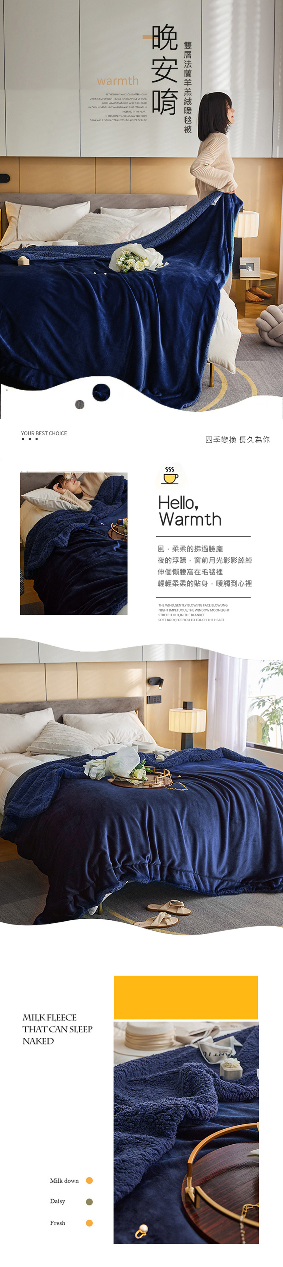 Albert家居《藏青色》法蘭絨羊羔絨加厚雙層暖暖被毯 1入 (保暖 毛毯 毯子)