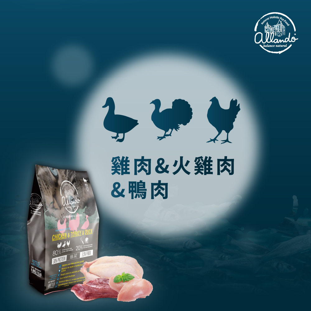 【Allando 奧藍多】天然全方位無穀貓糧6.8kg-雞肉+火雞肉+鴨肉口味