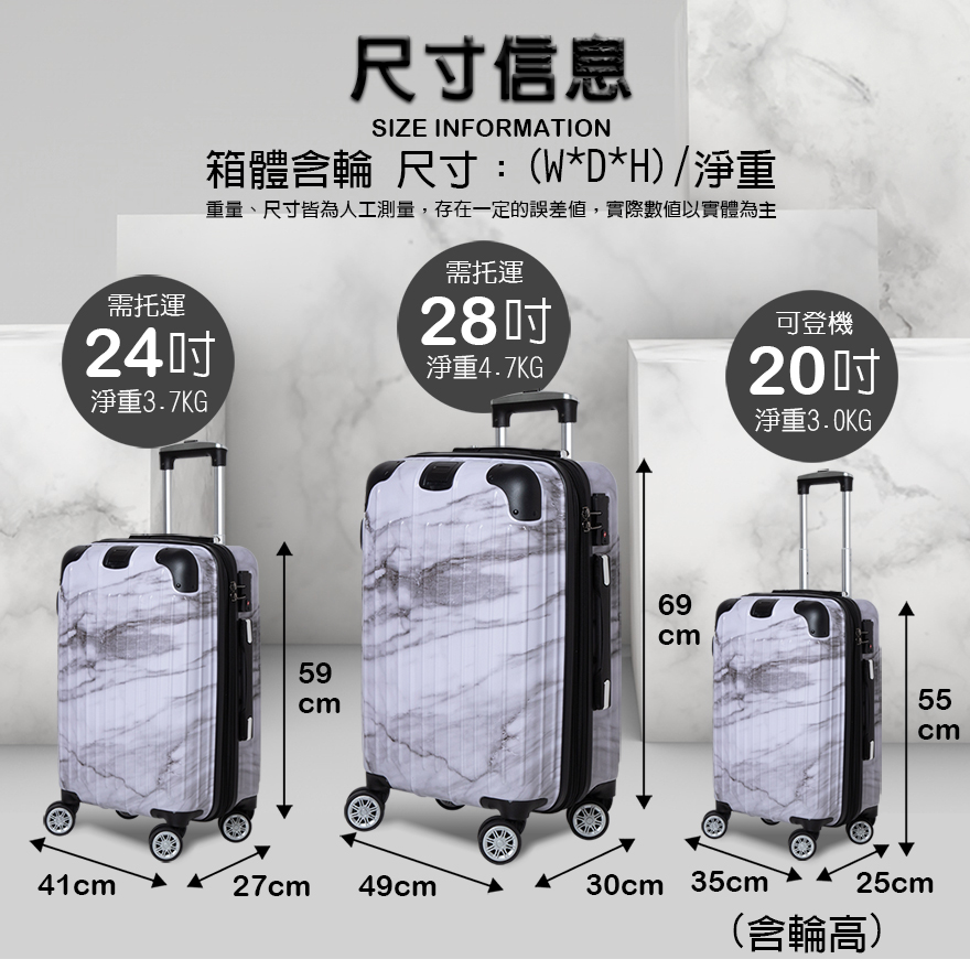 【Alldma鷗德馬】24吋大理石紋拉鏈行李箱S4-白大理石(附贈品)