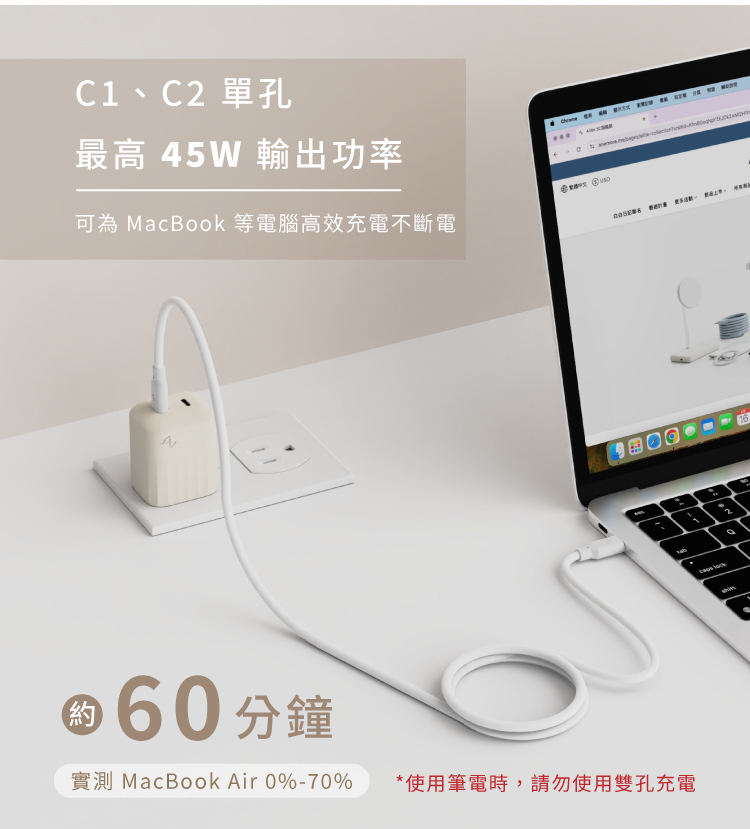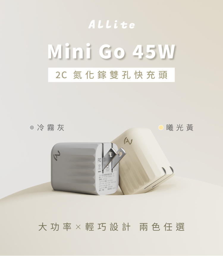 產品名稱:Allite Mini Go 45W 2C 氮化鎵雙孔快充頭