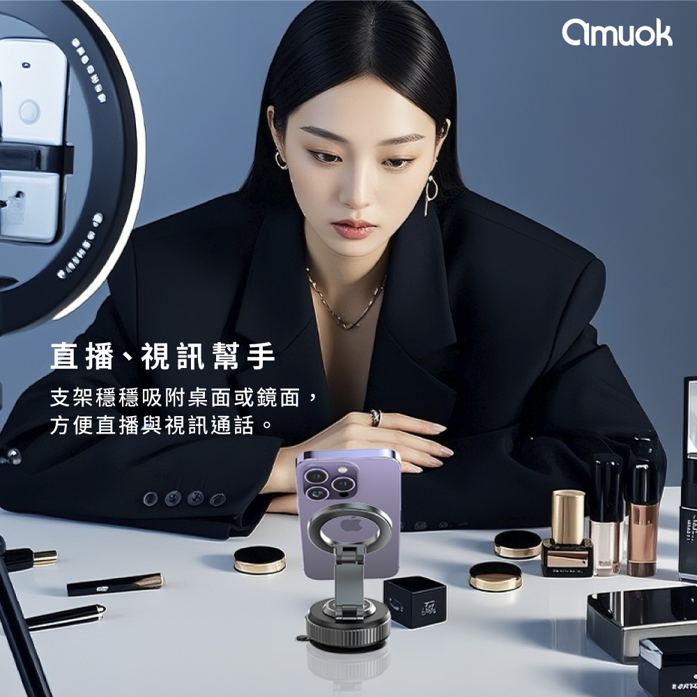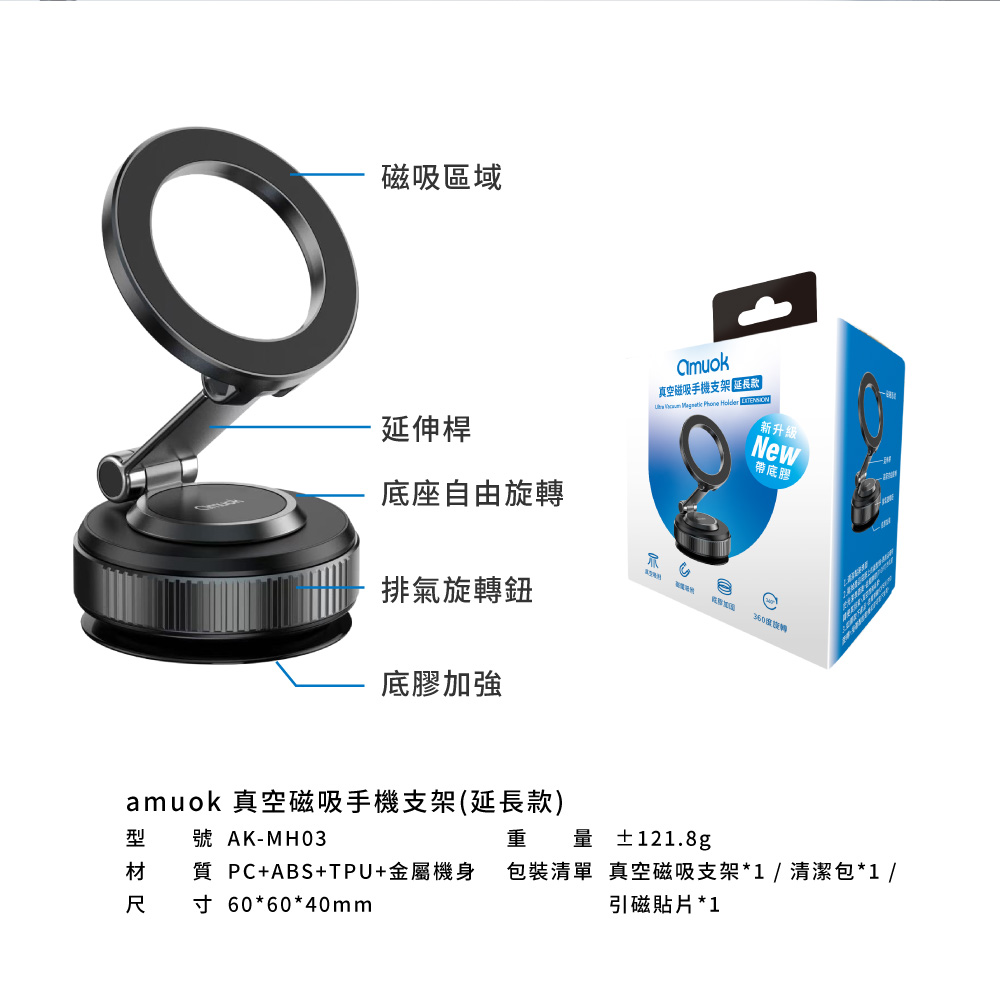 【amuok】真空磁吸手機支架 手動延長版 雙向吸附 磁吸支架 磁吸手機支架 車架