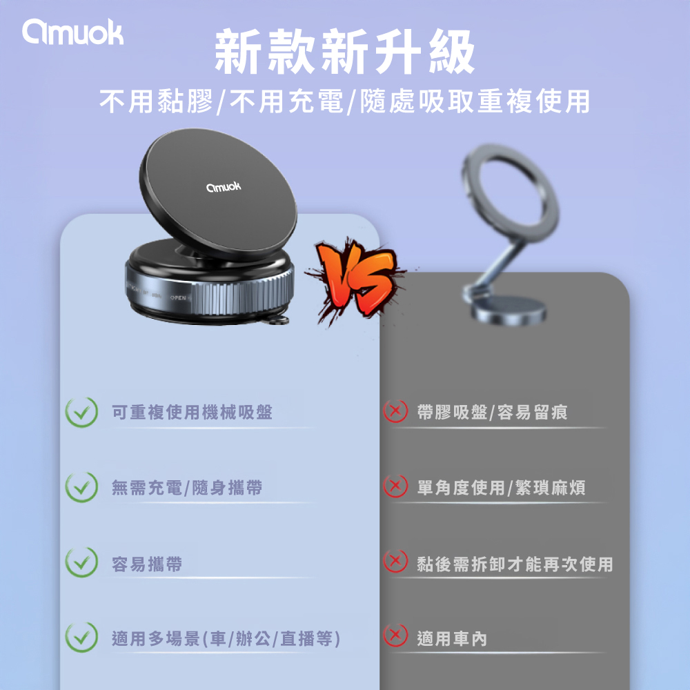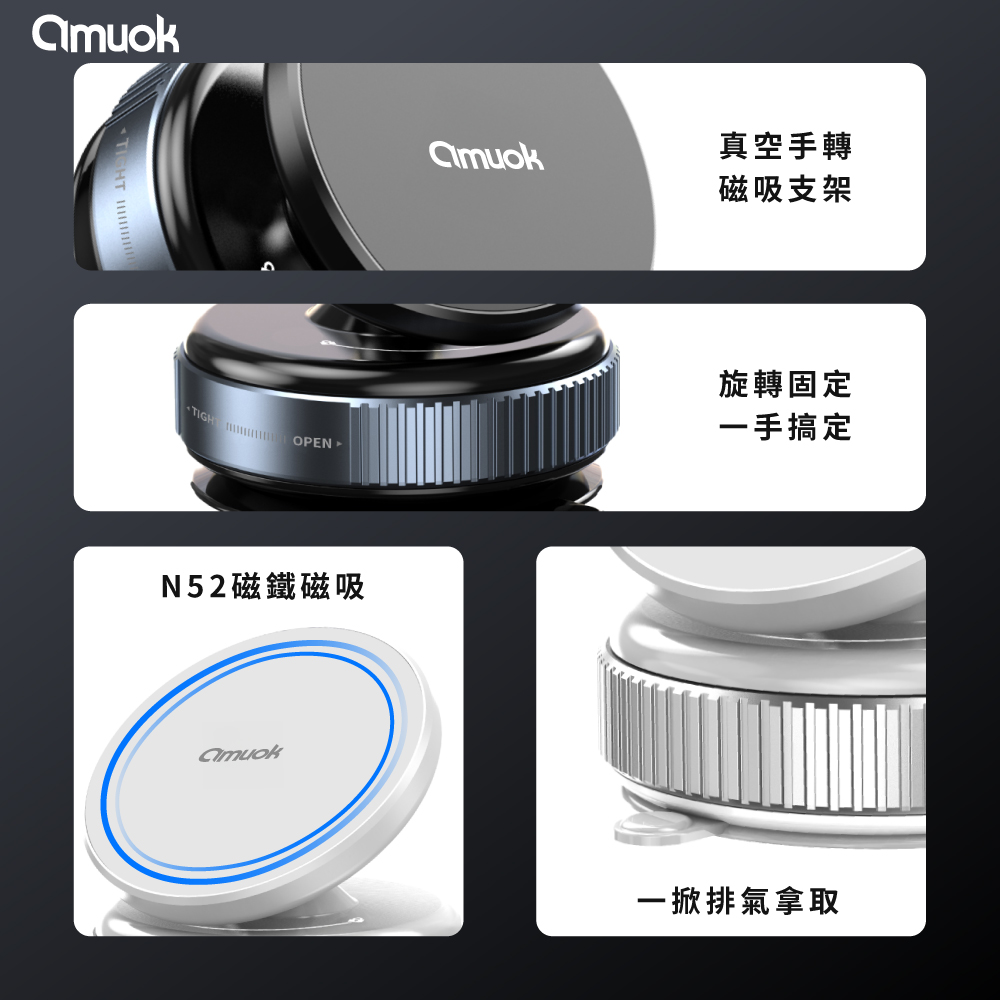 【amuok】真空磁吸手機支架 福利品(自動版 手動版 雙向吸附 磁吸支架 磁吸手機支架)
