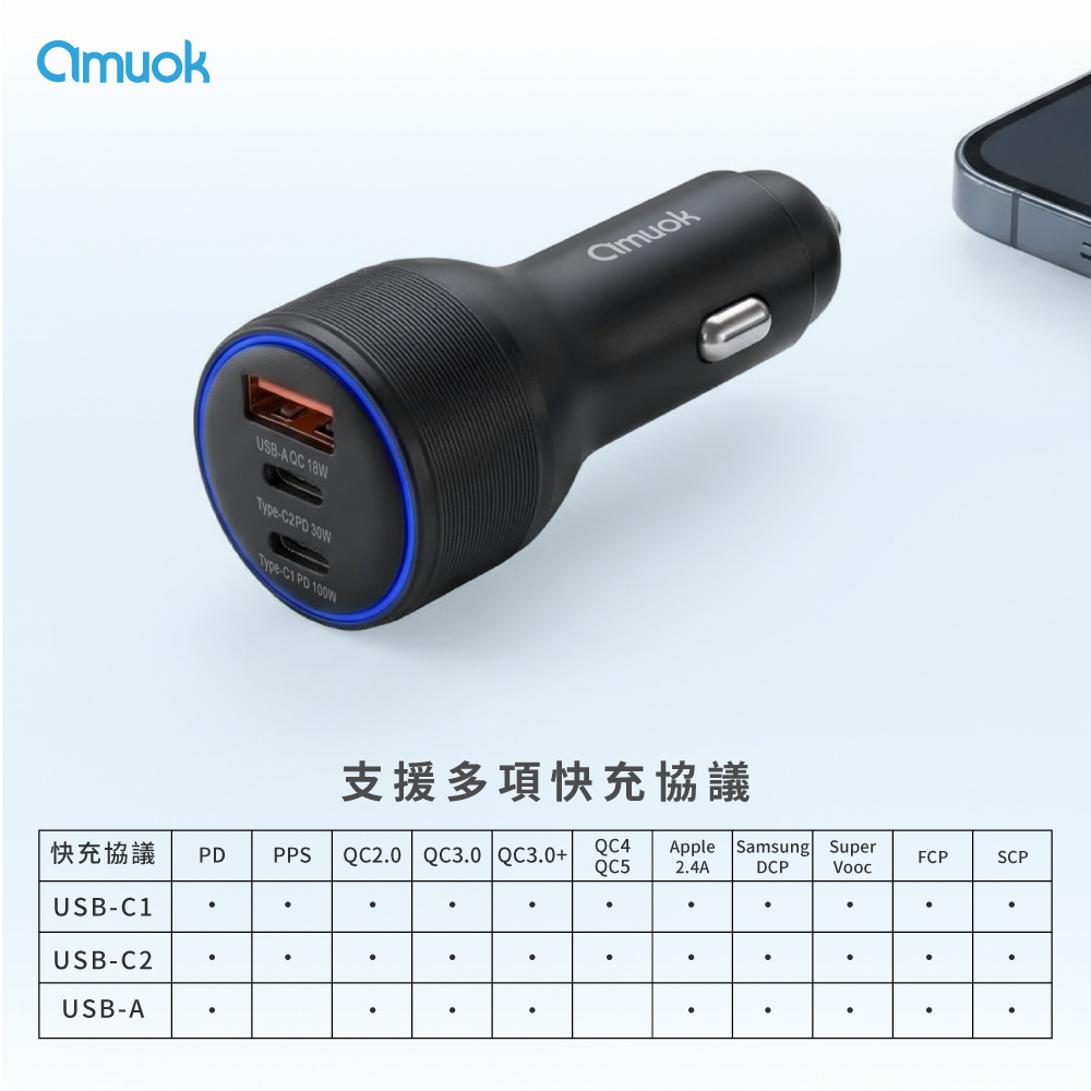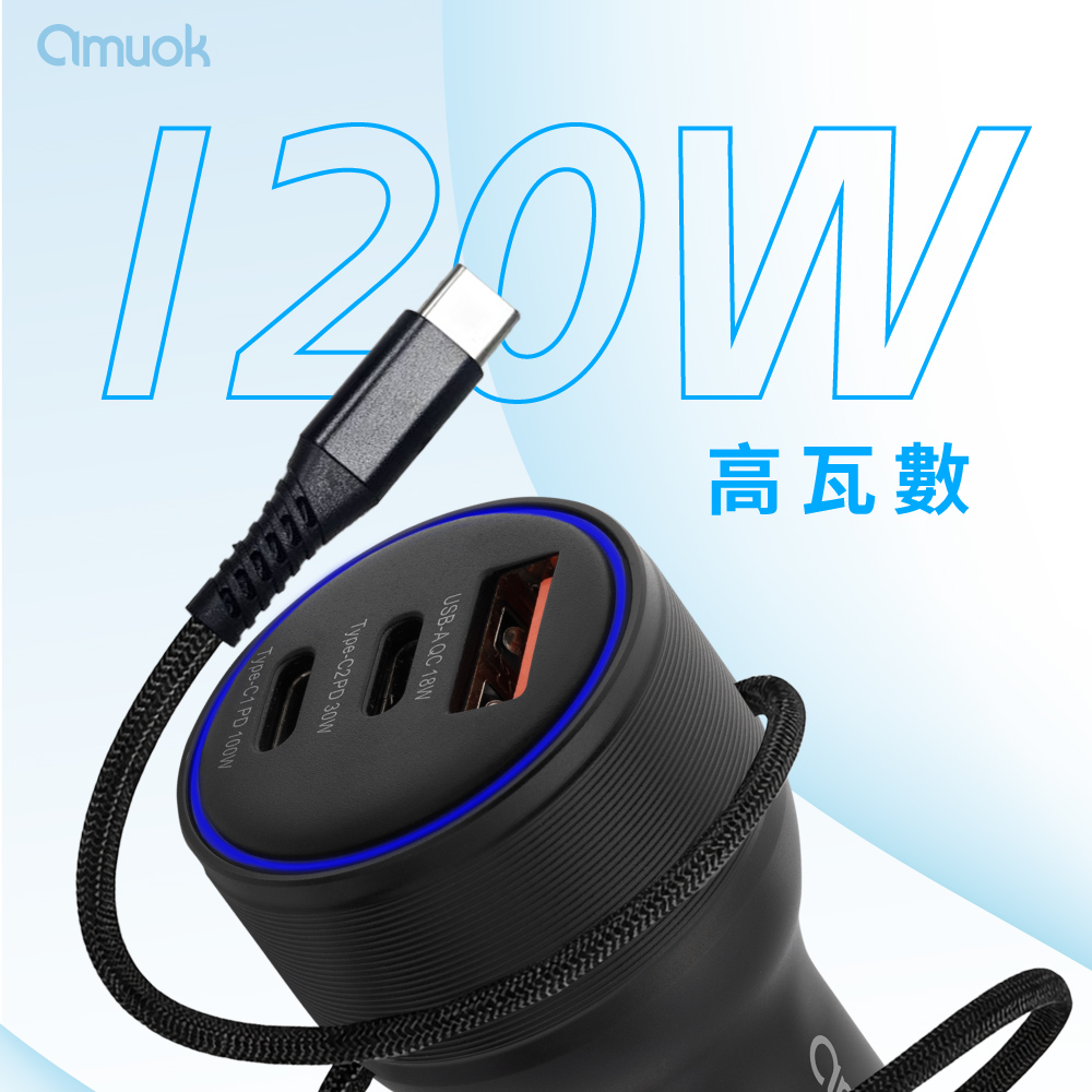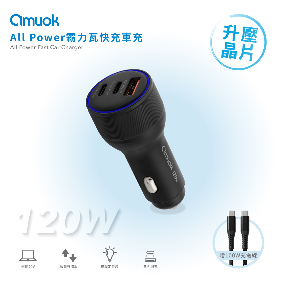 【amuok】All Power 120W 霸力瓦快充車充(TC+TC+USB) 點煙器 點菸器 車用充電器