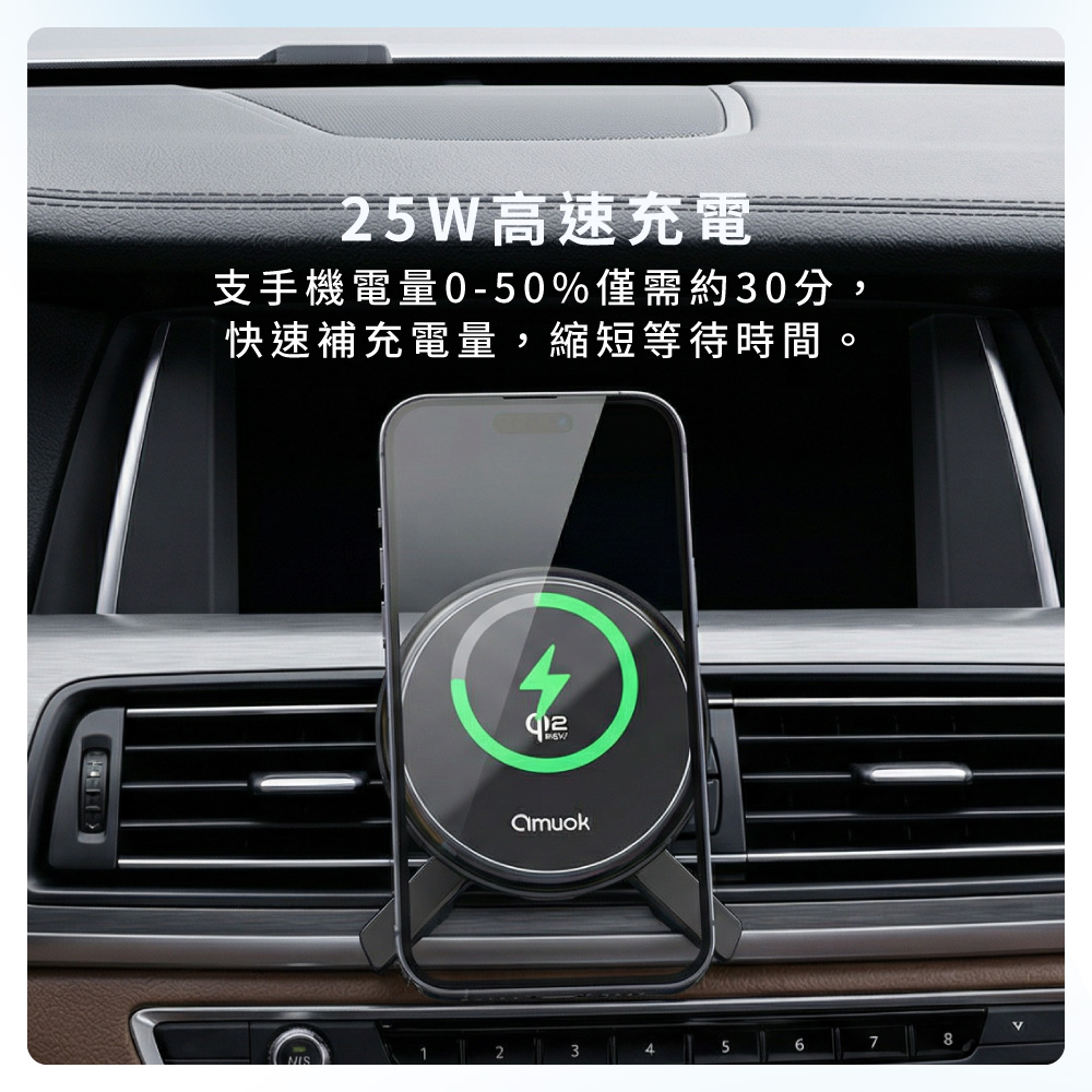 【amuok】Qi2.2認證 C25溫控車載無線充支架25W 車用支架 MagSafe 車架 磁吸車充 無線車充