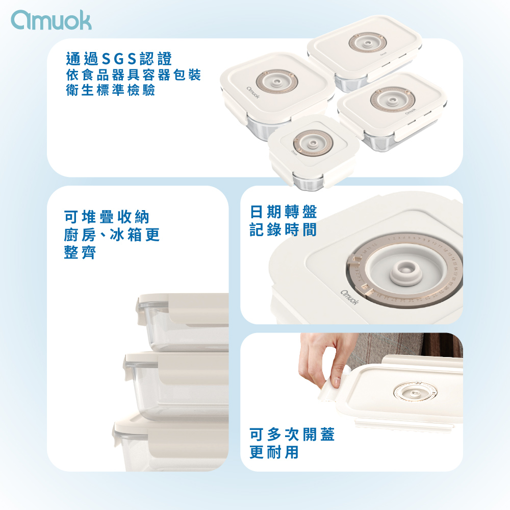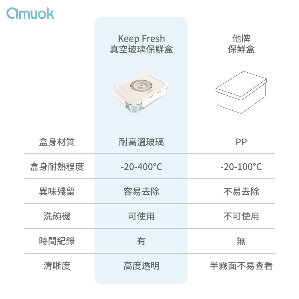 【amuok】Keep Fresh真空玻璃保鮮盒 抽真空保鮮盒 630ml