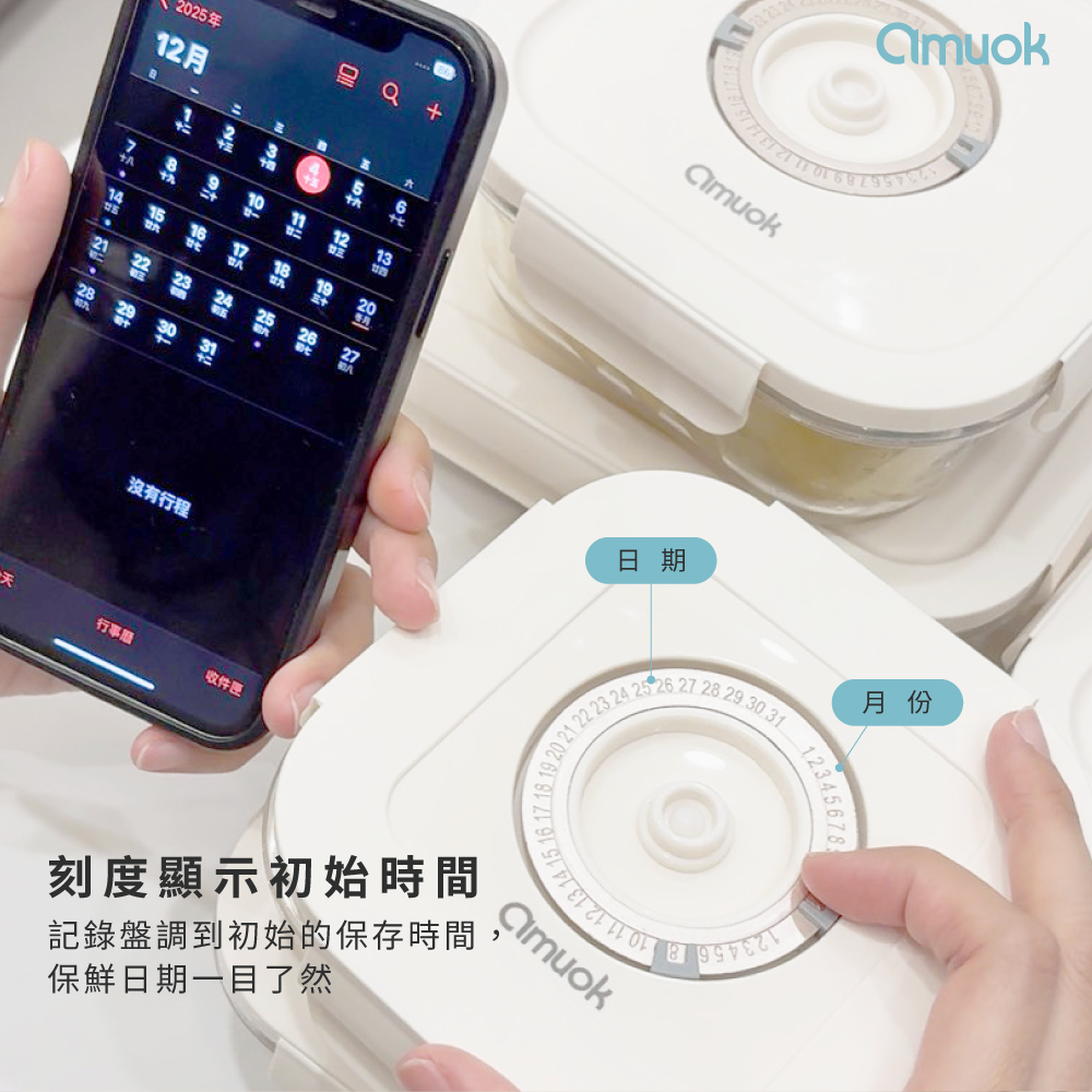 ● 通過SGS認證● 日期轉盤紀錄時間● 抽真空保存、延長保鮮● 玻璃身可微波amuok Keep Fresh真空玻璃保鮮盒 630ml產品型號:AK-LB01-0630產品材質:高硼矽玻璃、PP、矽膠產品容量:630ml產品尺寸:170×125×52mm產品重量:510g📌電動真空抽氣機須另外購買