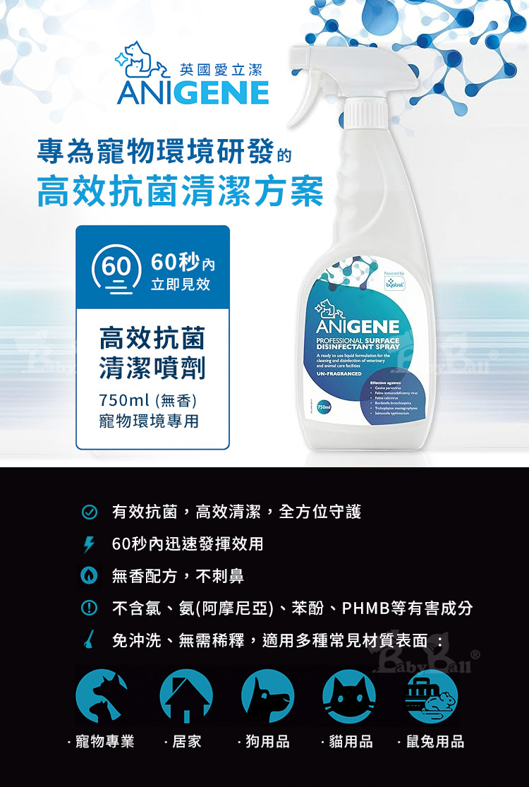 【倆寶貝精品館】Anigene英國愛立潔 寵物環境專用-高效抗菌清潔噴劑(無香)