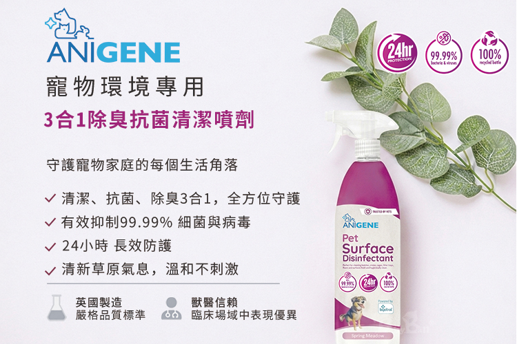 【倆寶貝精品館】【英國Byopet 升級版】Anigene愛立潔 寵物環境專用-3合1除臭抗菌清潔噴劑 750ml