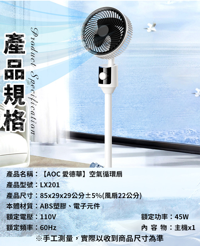 【AOC 愛德華】7吋空氣循環扇(風扇/立扇/桌扇/伸縮立扇/渦流/涼風風扇/電風扇/電扇)(LX201)