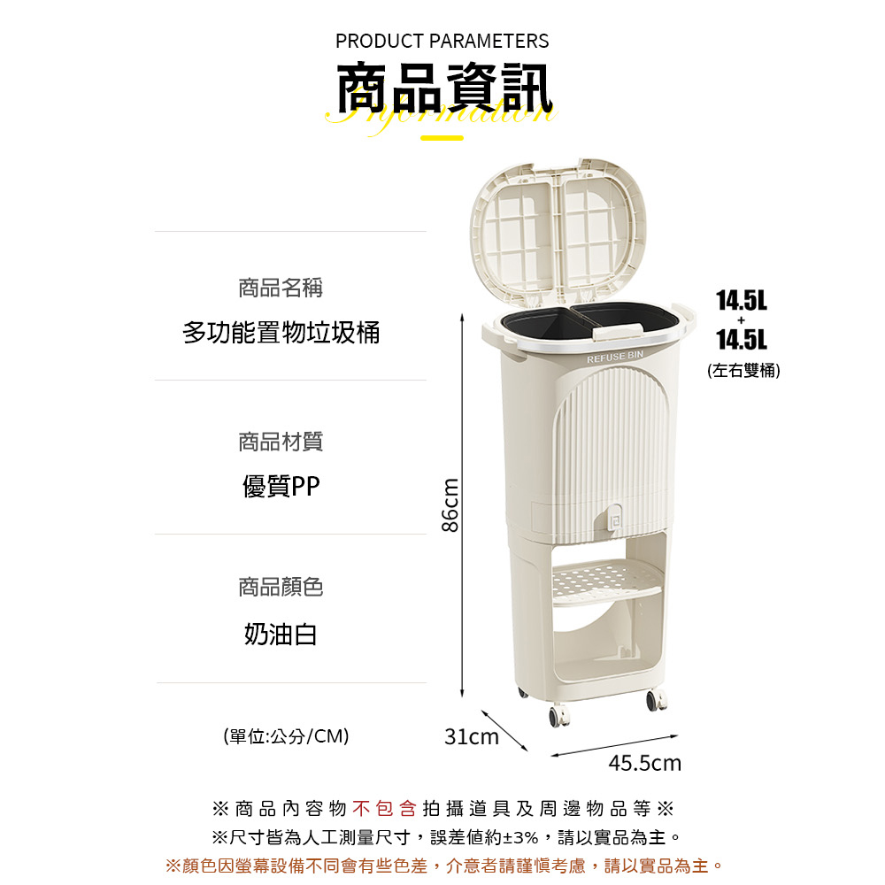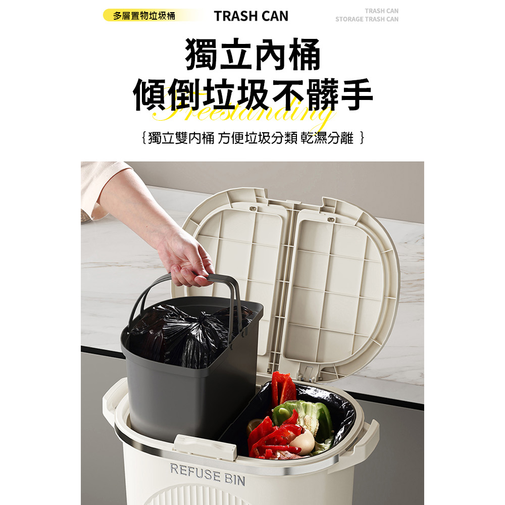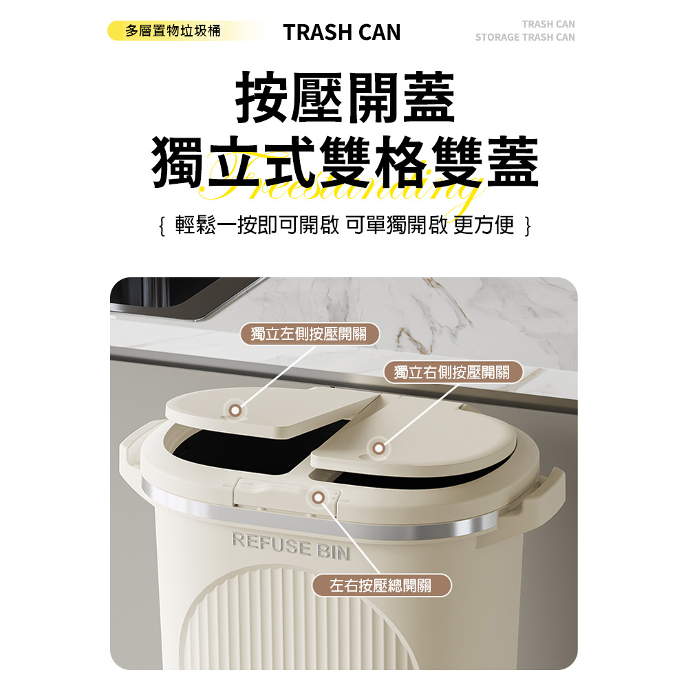 【AOTTO】大容量附輪雙蓋不彎腰分類垃圾桶(AS-603)