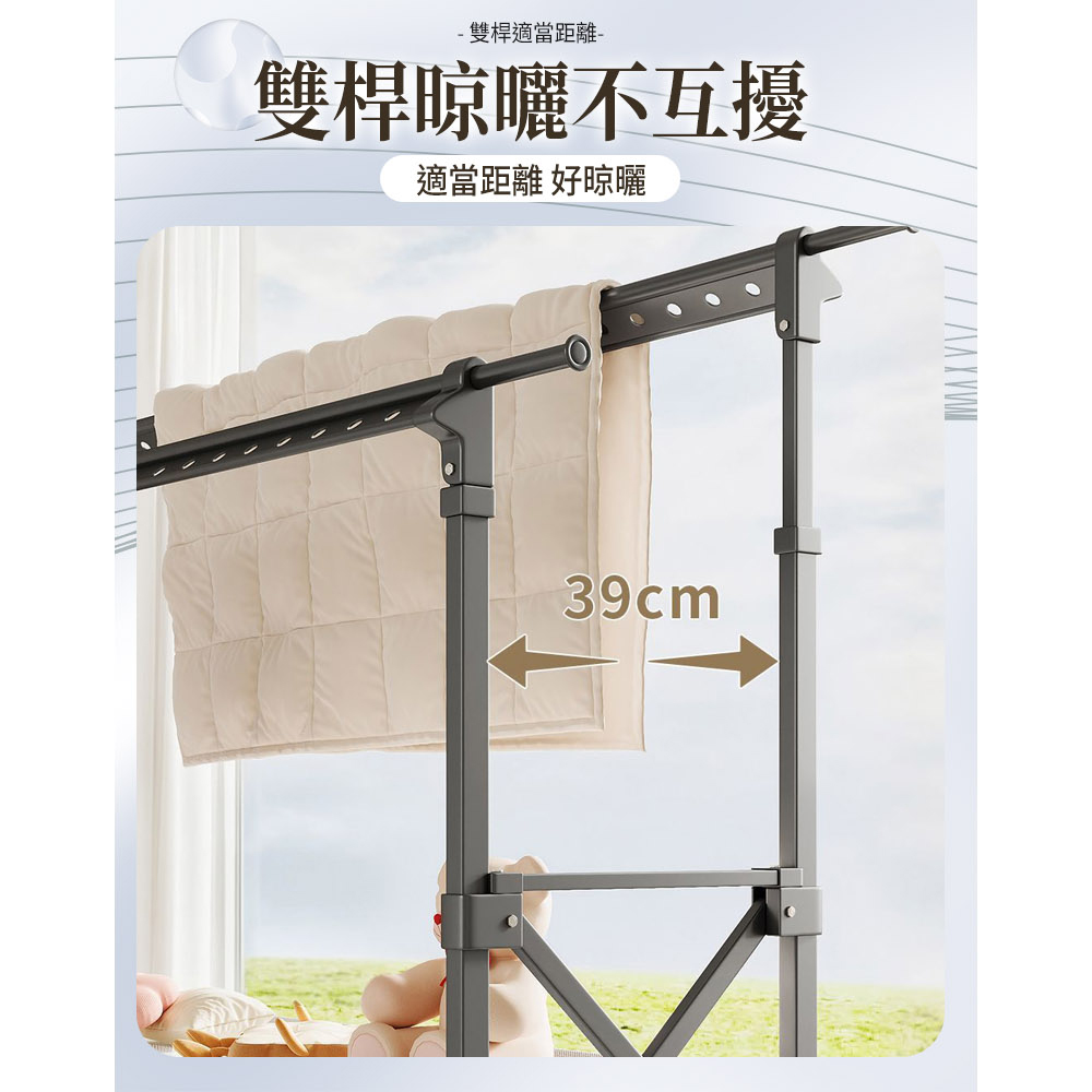【AOTTO】H型雙桿附輪伸縮升降折疊曬衣架(HA-033)