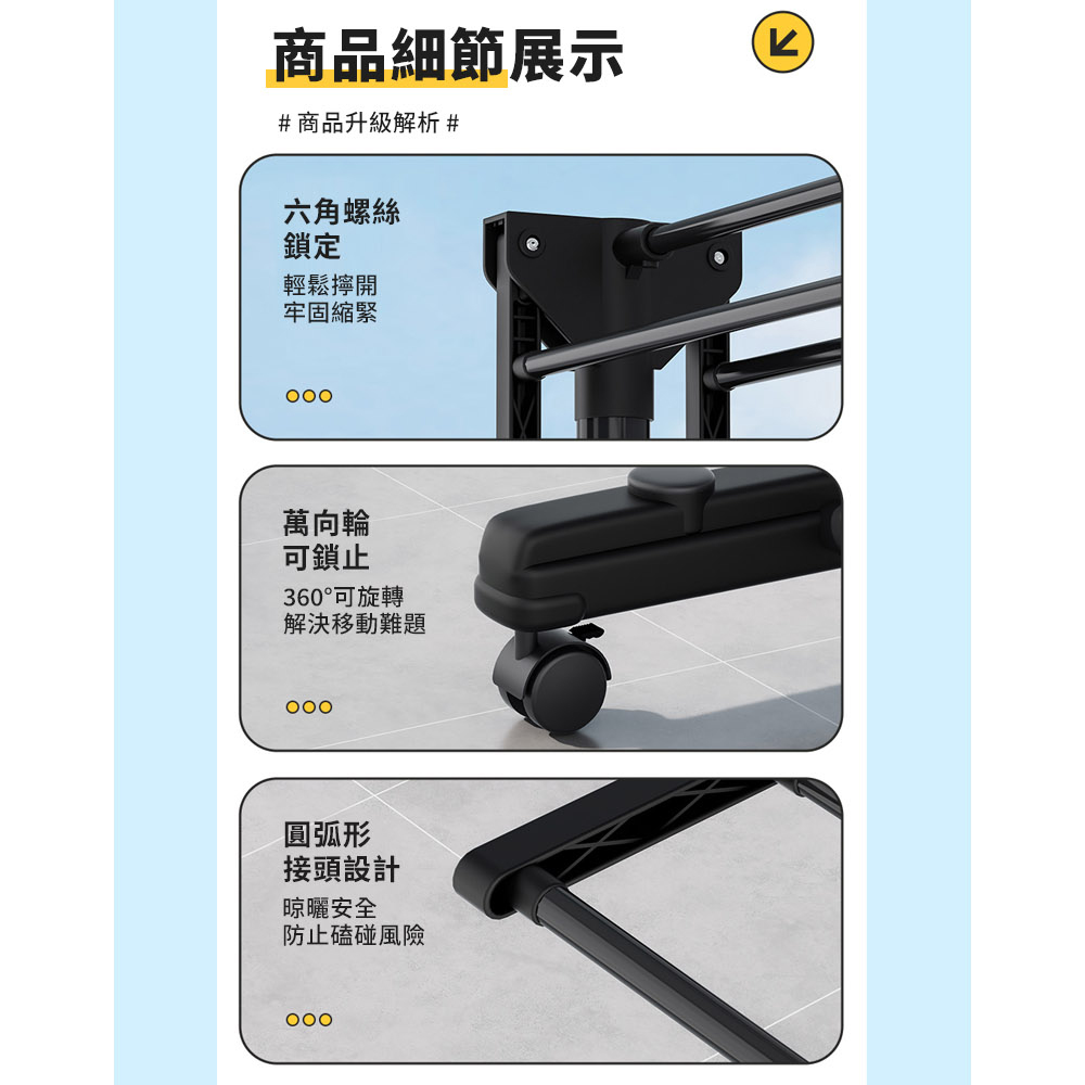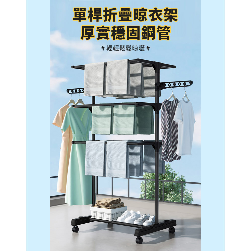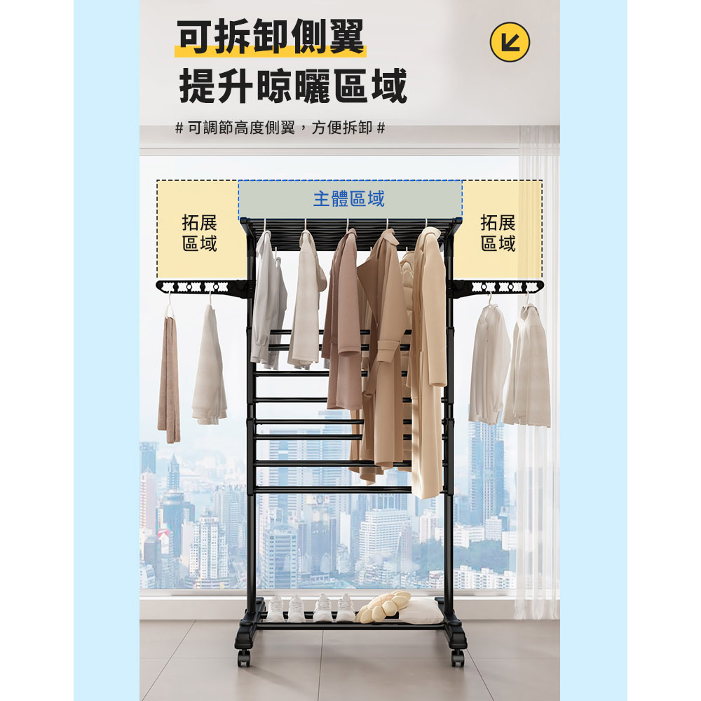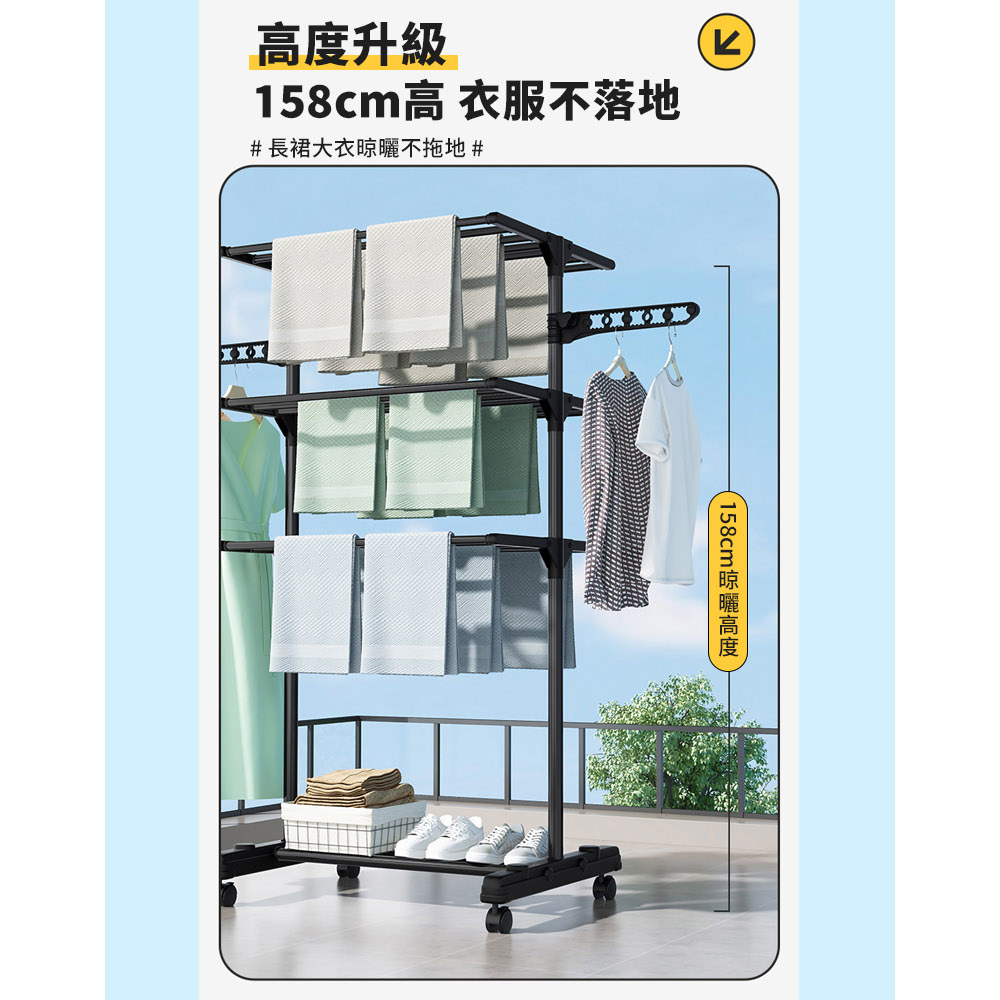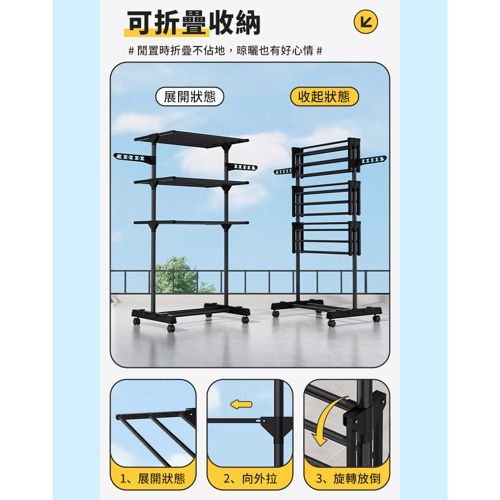 多功能加大分層晾曬 附輪設計 方便移動 加厚鋼管 穩固耐重