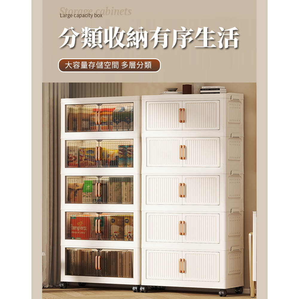 【AOTTO】80面寬五層摺疊附輪雙開門收納櫃(AC-080BK)