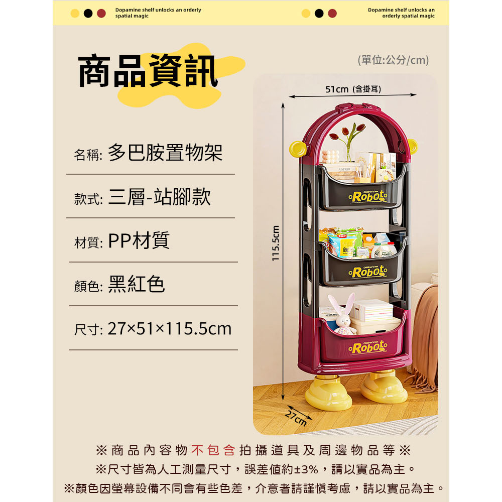 【AOTTO】多巴胺童趣三層收納置物架(AS-215)