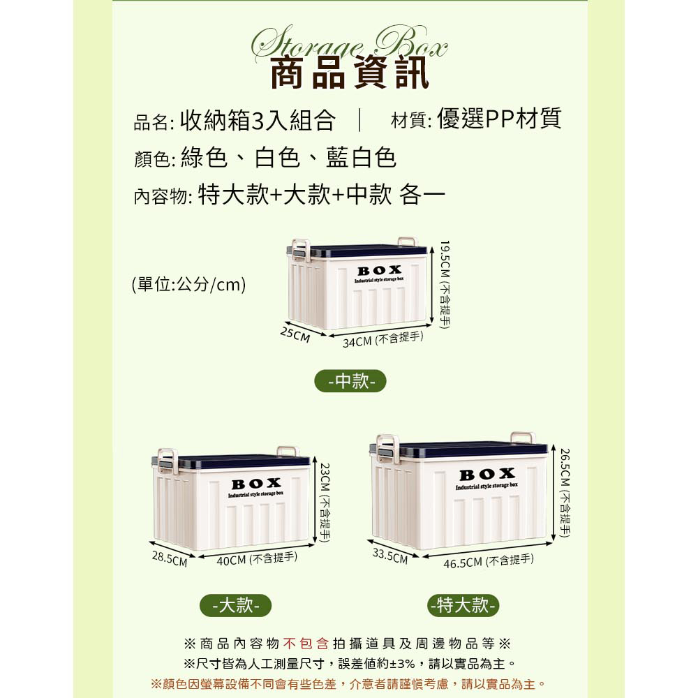 三種尺寸一次滿足 大容量收納 三種尺寸 加厚材質 穩固耐重 雙耳提手 輕鬆搬移尺寸: