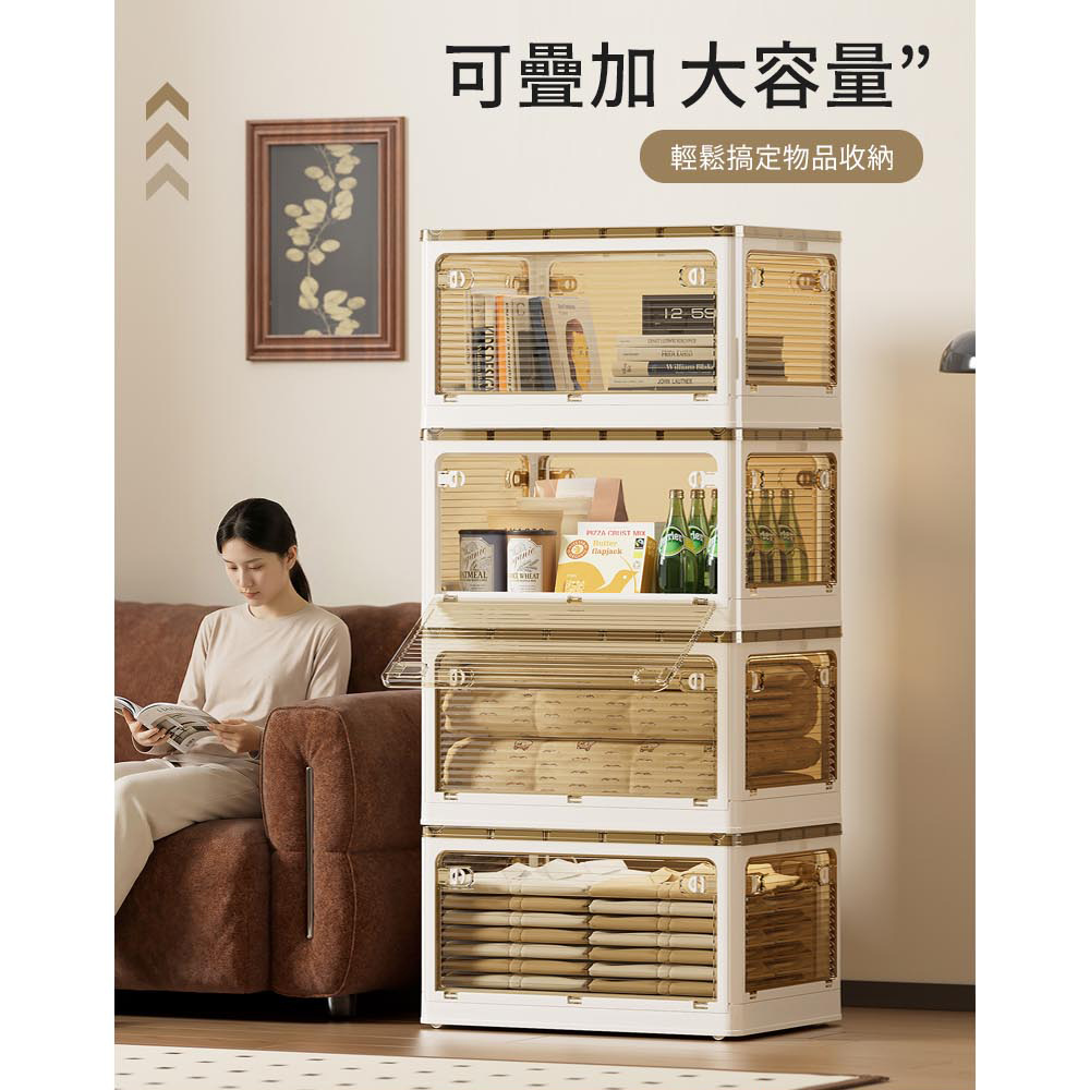 【AOTTO】72L升級加厚款五開門可疊加折疊收納箱-藍色4入(AL-260B)
