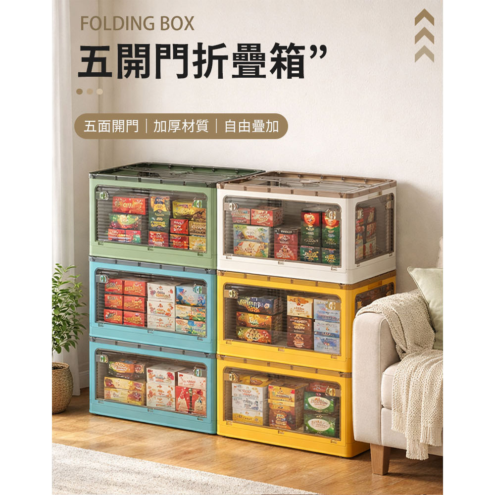 【AOTTO】45L升級加厚款五開門可疊加折疊收納箱-綠色5入(AL-250GN)