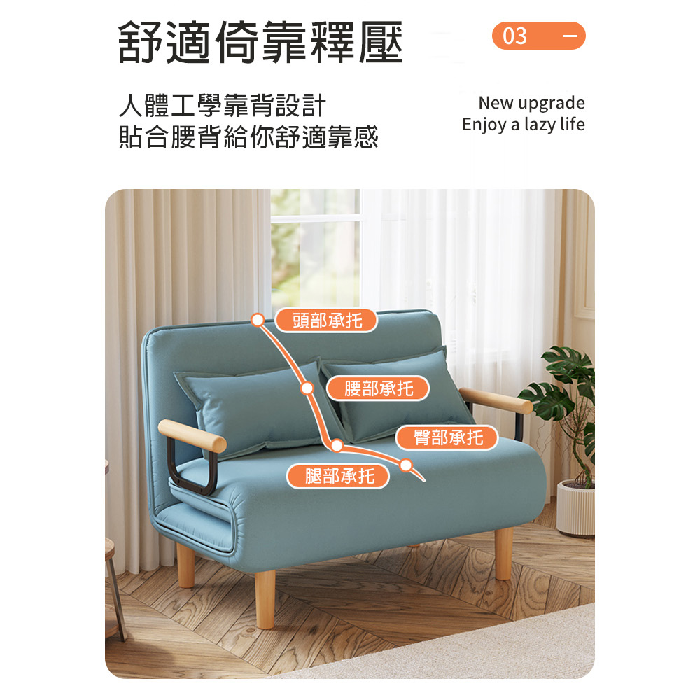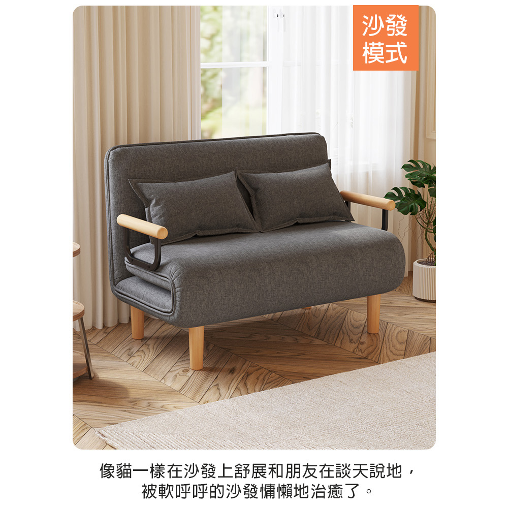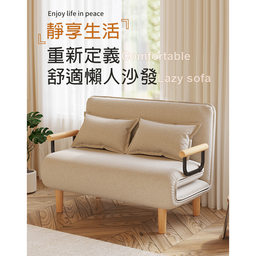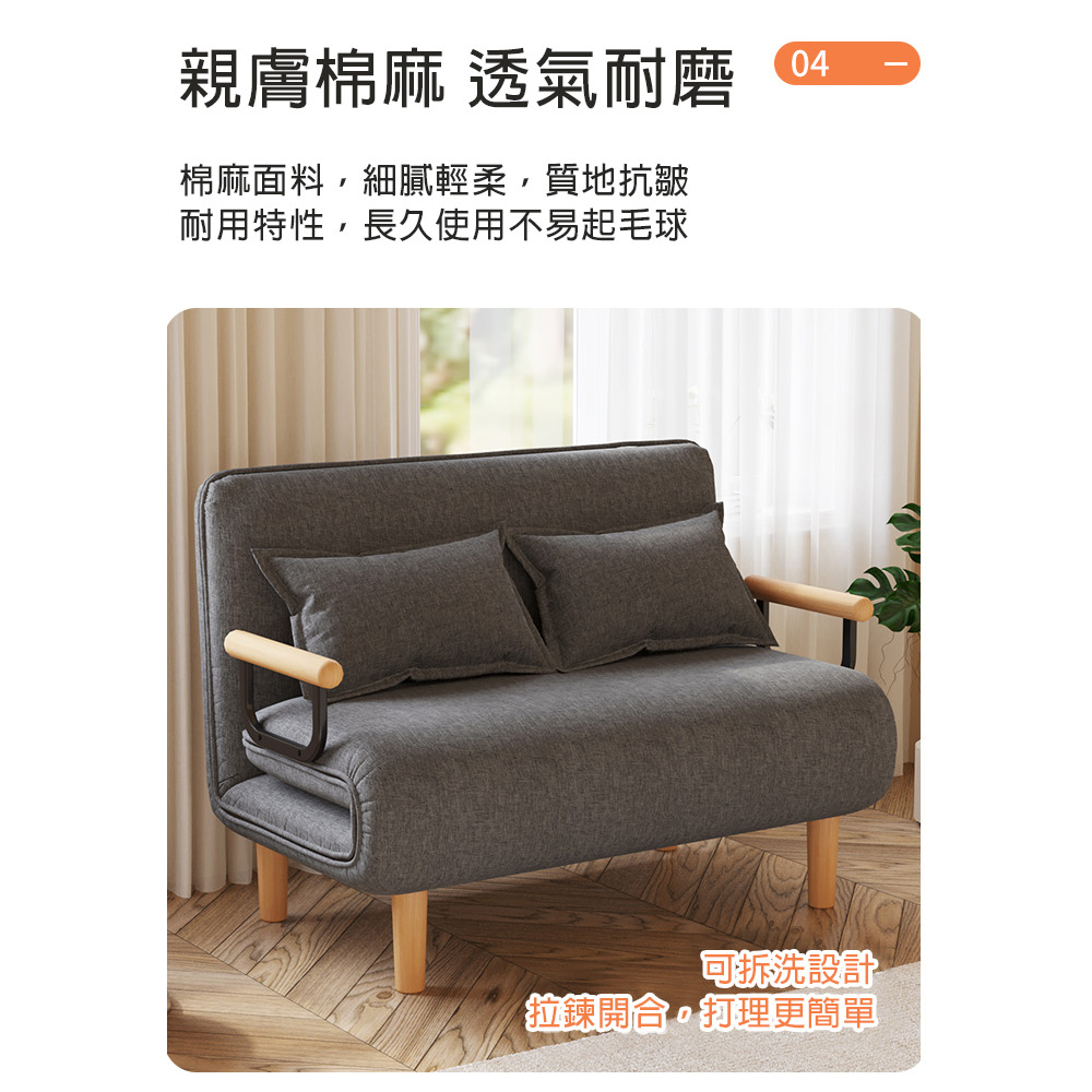 是沙發也是床自由調節不佔地棉麻透氣可拆洗尺寸:沙發(120*68*82cm±3%) 沙發床(120*195*28cm±3%)材質:實木腿+海綿+棉麻+鋼架