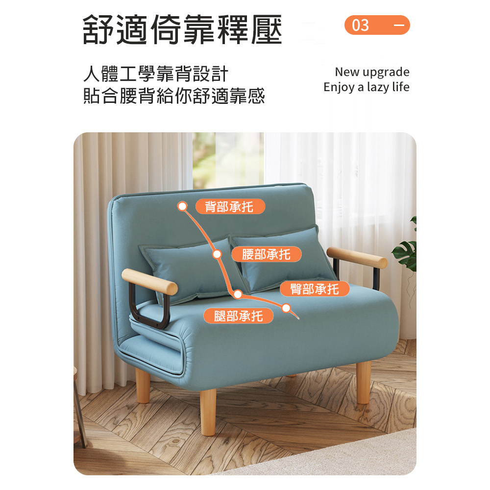 【AOTTO】100公分加大款多功能懶人折疊沙發床-藍色(SF-004B)