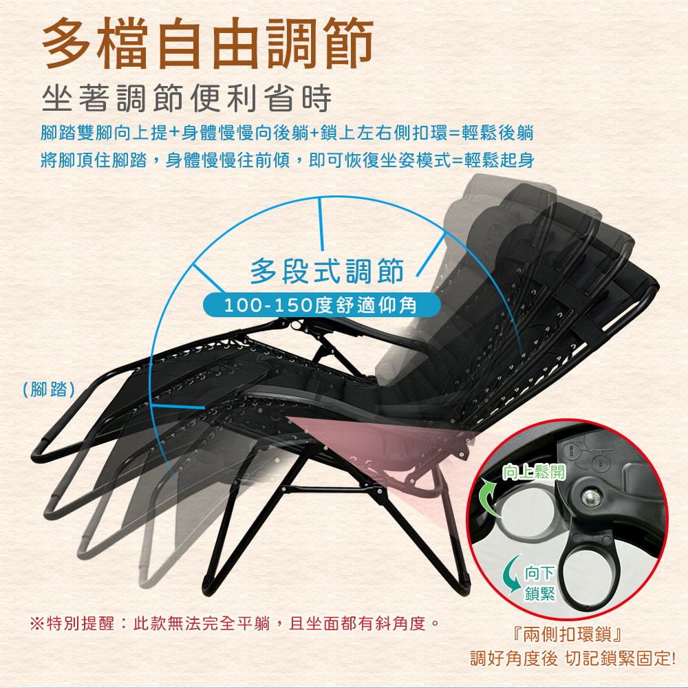 【AOTTO】升級款舒適頭枕加厚泡棉折疊躺椅(LC-002)