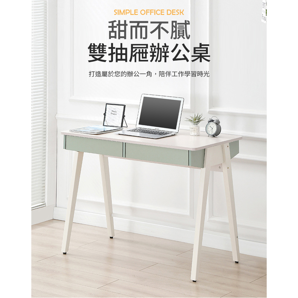 【AOTTO】北歐風莫蘭迪雙抽辦公桌-100cm((FT-504GN)